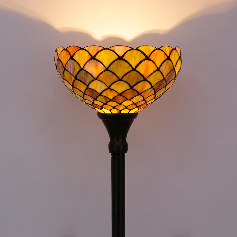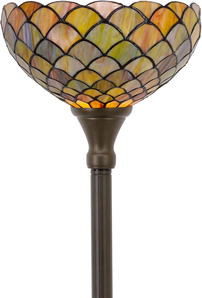 Tiffany Torchiere Floor Lamp Stained Glass Corner Standing Pole Light 12X12X72 Inches