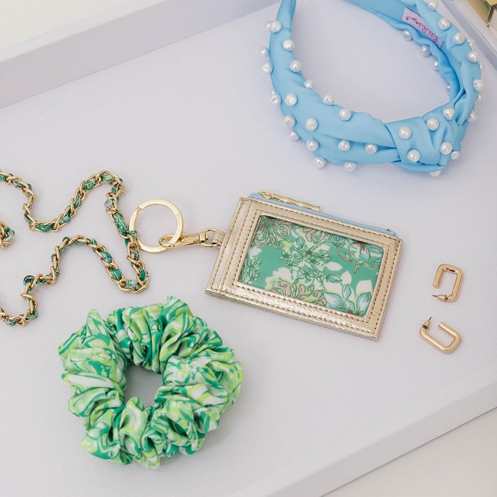 Lilly Pulitzer Lanyard with ID Holder, Keychain Wallet for School or Office, Gold Zipper Wallet, Badge Holder with Clear Window and Card Slots, Blossom Views