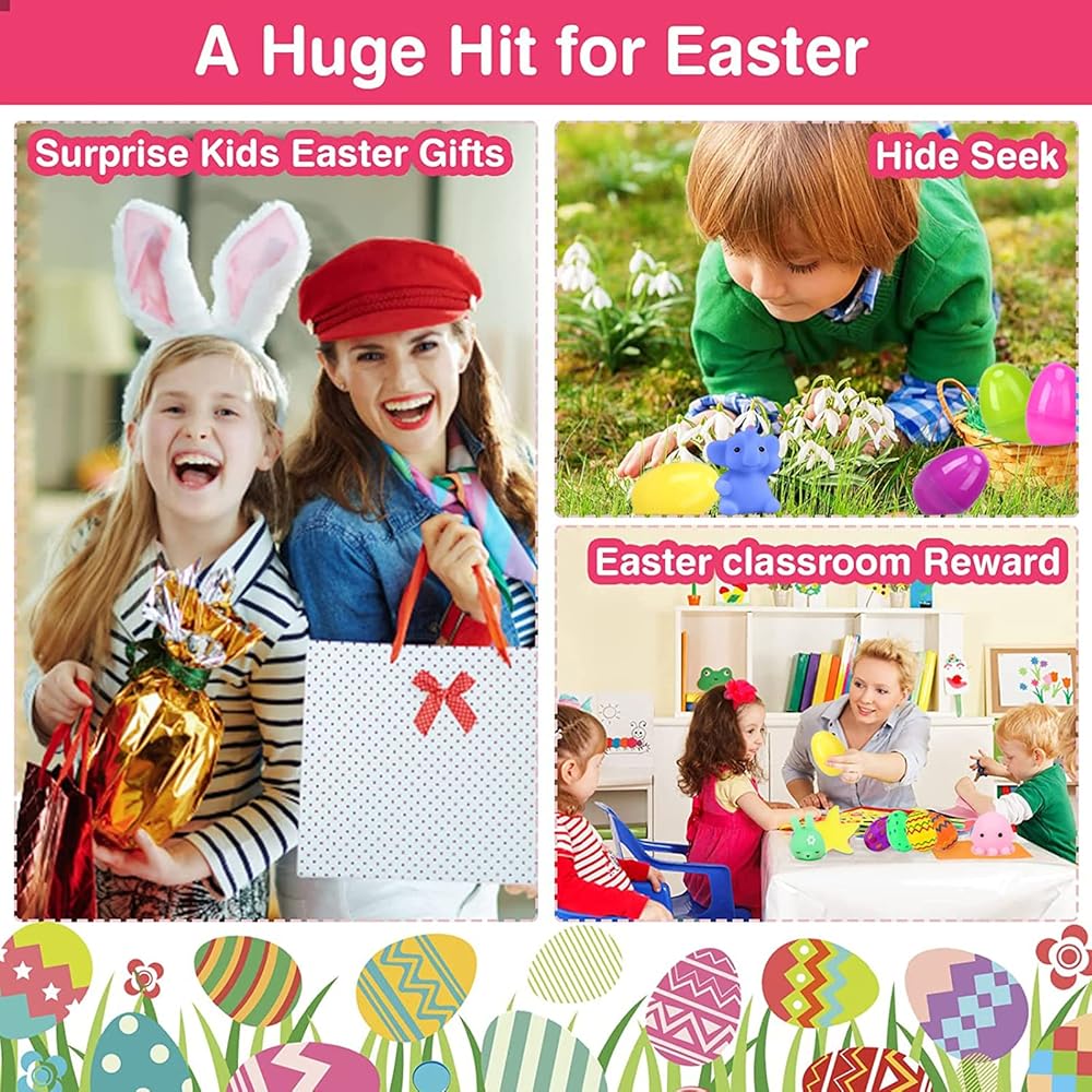 【Child Safety & Washable Material】 These squishy toys are made of soft silicone material, which is stretchy and sticky. They can be easily rinsed with water directly when getting dirty. The Easter eggs have resilient and bright shell. Our toy is child safe, non-toxic, non-BPA,and abides by US toys standards, big hit for easter at school.