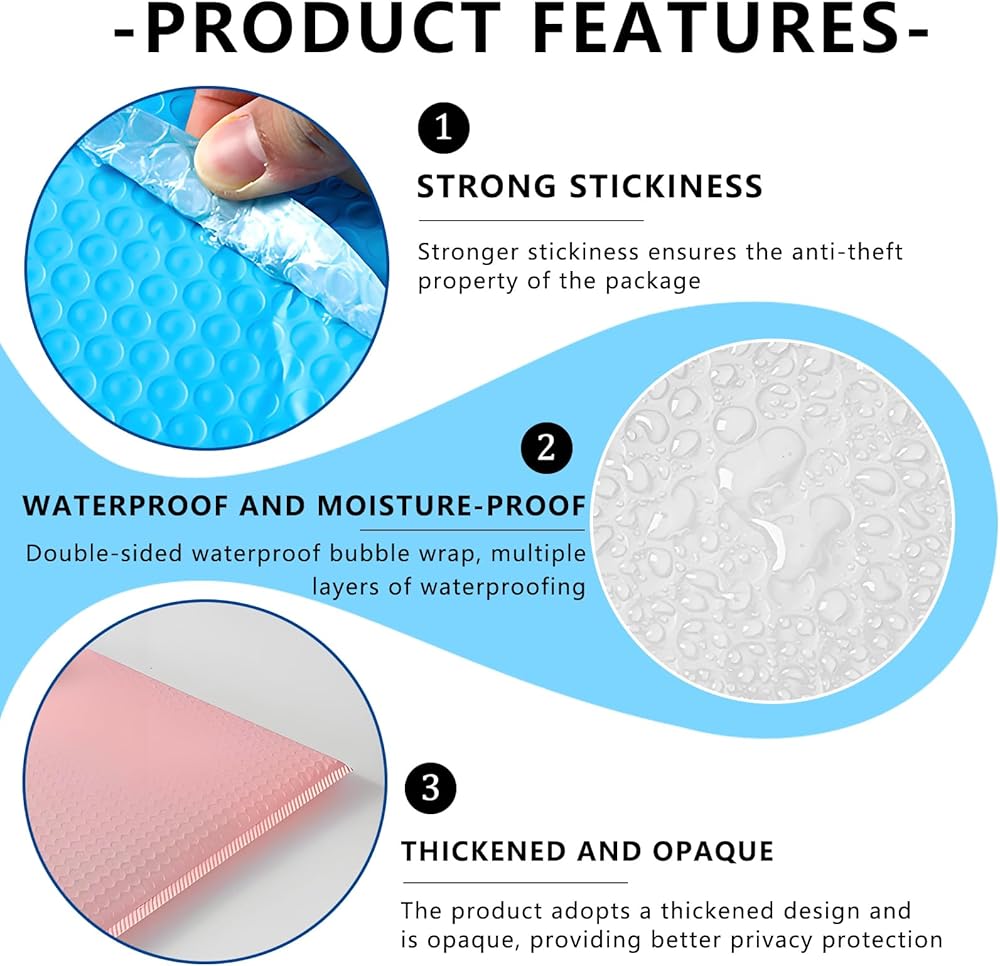 Convenient and Economical: The poly bubble mailers are an affordable alternative to standard packaging. It is very suitable for transporting jewelry, makeup, cards, phone case, photos, handcraft and more.Great for small business packing,shipping gifts cushioning mailer