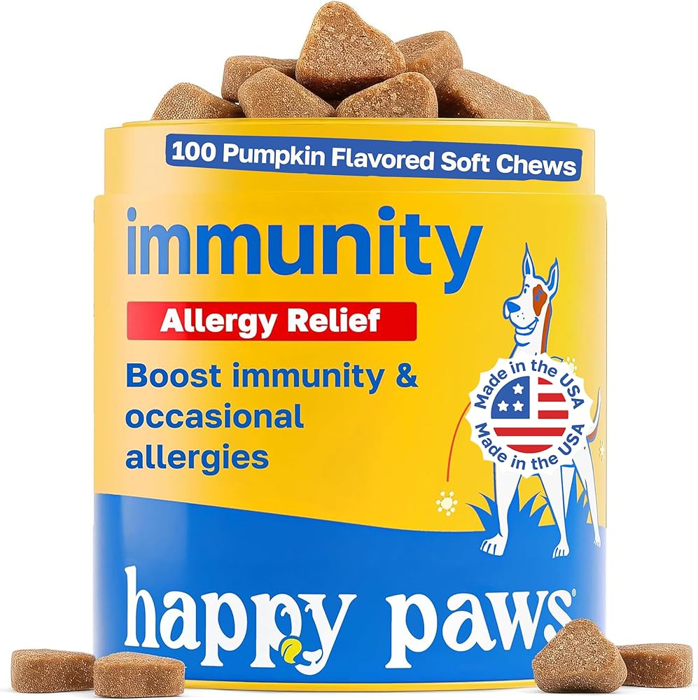 DAILY WELLNESS SUPPORT: Happy Paws Immunity soft chews are designed for everyday wellness, offering a simple way to incorporate natural ingredients into your dog's routine. These easy-to-serve chews are a great addition to your pup's daily care and pet vitamins and supplements routine, supporting joint, allergy, and immunity health. Made with plant based ingredients and free from artificial flavors or preservatives.