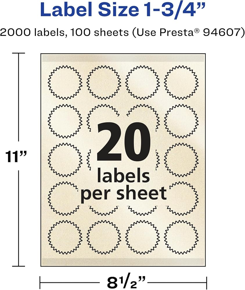 Avery Pearlized Ivory Starburst Labels, Sure Feed Technology, Print-to-The-Edge, 1.75", 2,000 Pearlized Ivory Labels, Laser/Inkjet Printable