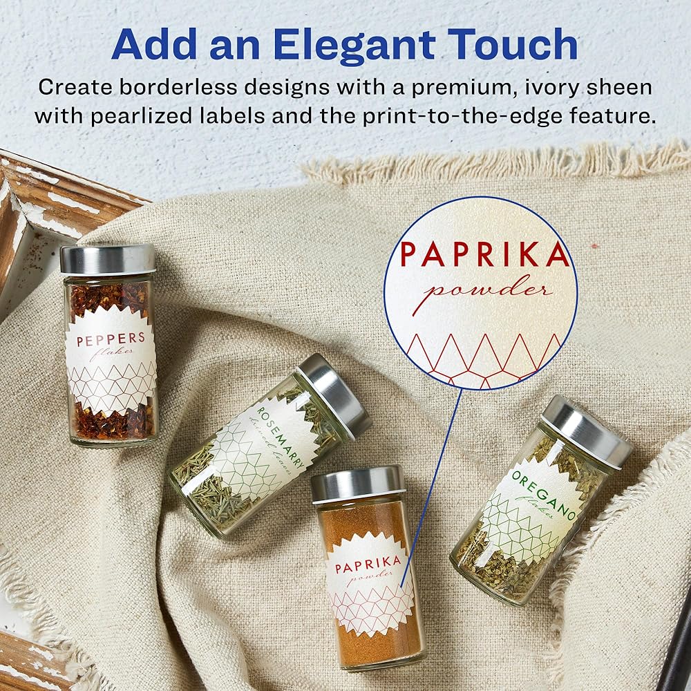 - Add an elegant touch to your projects with the shimmering finish of pearlized ivory labels
