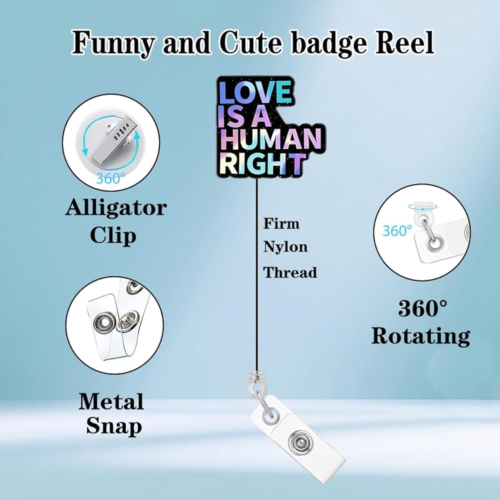 Nurse Nursing Badge Reel Holder Clip Retractable Love is A Human Right Funny ID Badge Holder Clip Pink Acrylic Name Badge Clip Medical RN CNA Office Hospital Worker Accessories