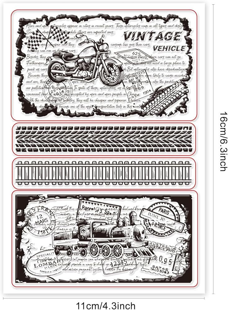 Package: 1 pc clear silicone stamps with different patterns, including vintage airplanes, clouds and compass.