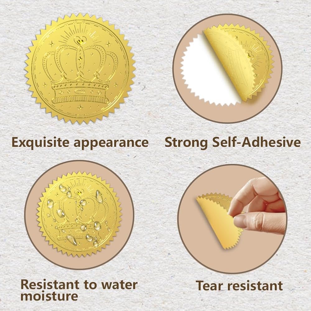 Easy to Use: our embossed foil seal sticker is self-adhesive, easy to peel or stick, you can stick it directly and easy to stick on paper or other places, just keep on a smooth and clean dry surface, without extra glue or tape, add the finishing touch to awards, certificates