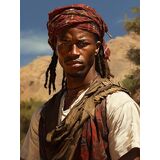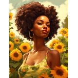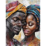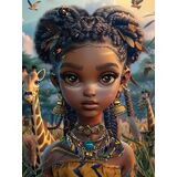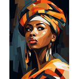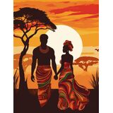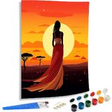 In the heart of the savanna, a woman stands alone, gazing into the sunset. Her dress flows like the rivers that nourish the land, carrying the spirit of her ancestors. As the sun sets, it casts a warm glow over the landscape, symbolizing hope and resilience. This painting captures the essence of strength and beauty, embodying the courage to face the challenges of life with grace.