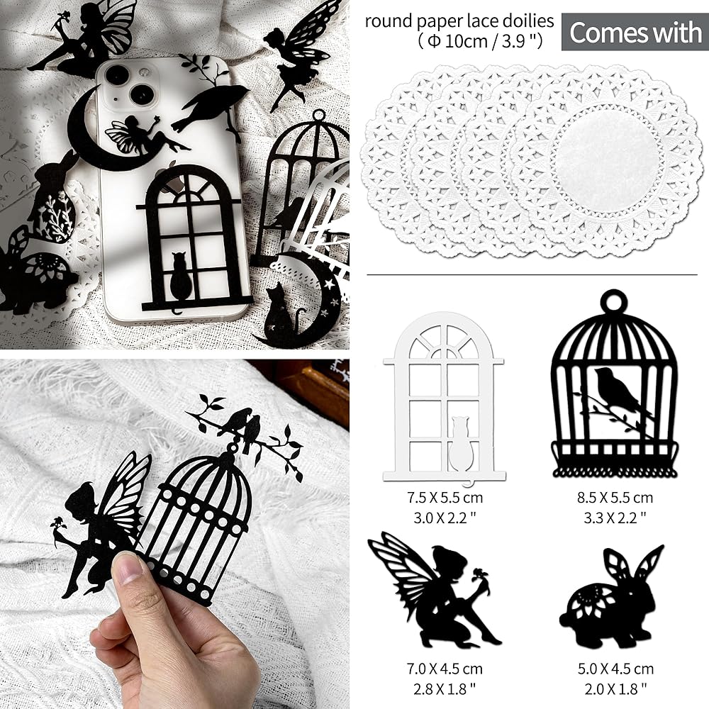 * ( Cutout Paper Set in Different Styles ) * The cutout frame decorative paper is printed in 3 classic colors: black, white and beige, and both sides could be used, which would meet your needs for different scrapbook paper design modes, both retro and elegant.