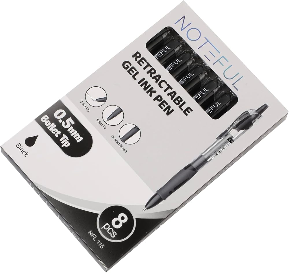 Experience smooth, precise writing with the Black Gel Pen 0.5mm, available in a convenient pack of 8. Designed for effortless writing, these pens feature a fine tip that ensures crisp, clean lines every time. Whether you're taking notes, journaling, or working on detailed projects, the fast-drying ink prevents smudging, leaving your work neat and professional. The comfortable grip makes writing for extended periods easy and enjoyable. With 8 pens in each pack, you'll always have a reliable pen at your fingertips. Ideal for students, professionals, and anyone who values quality writing instruments.