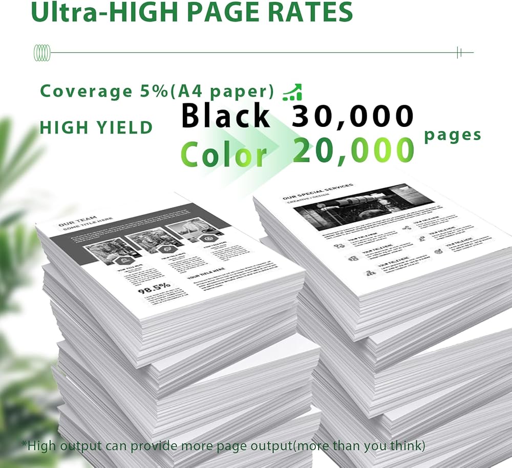 High Yield: Up to 30,500 pages per Black TK8517 toner cartridge,20,000 pages per Color TK-8517 Toner cartridgeat 5% coverage in A4