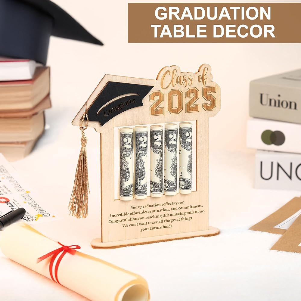 Stylish Storage with Sentiment: This graduation money box 2025 combines beautiful craftsmanship with functionality. Easily roll up bills or notes and store them safely as a gift that graduates will proudly display.