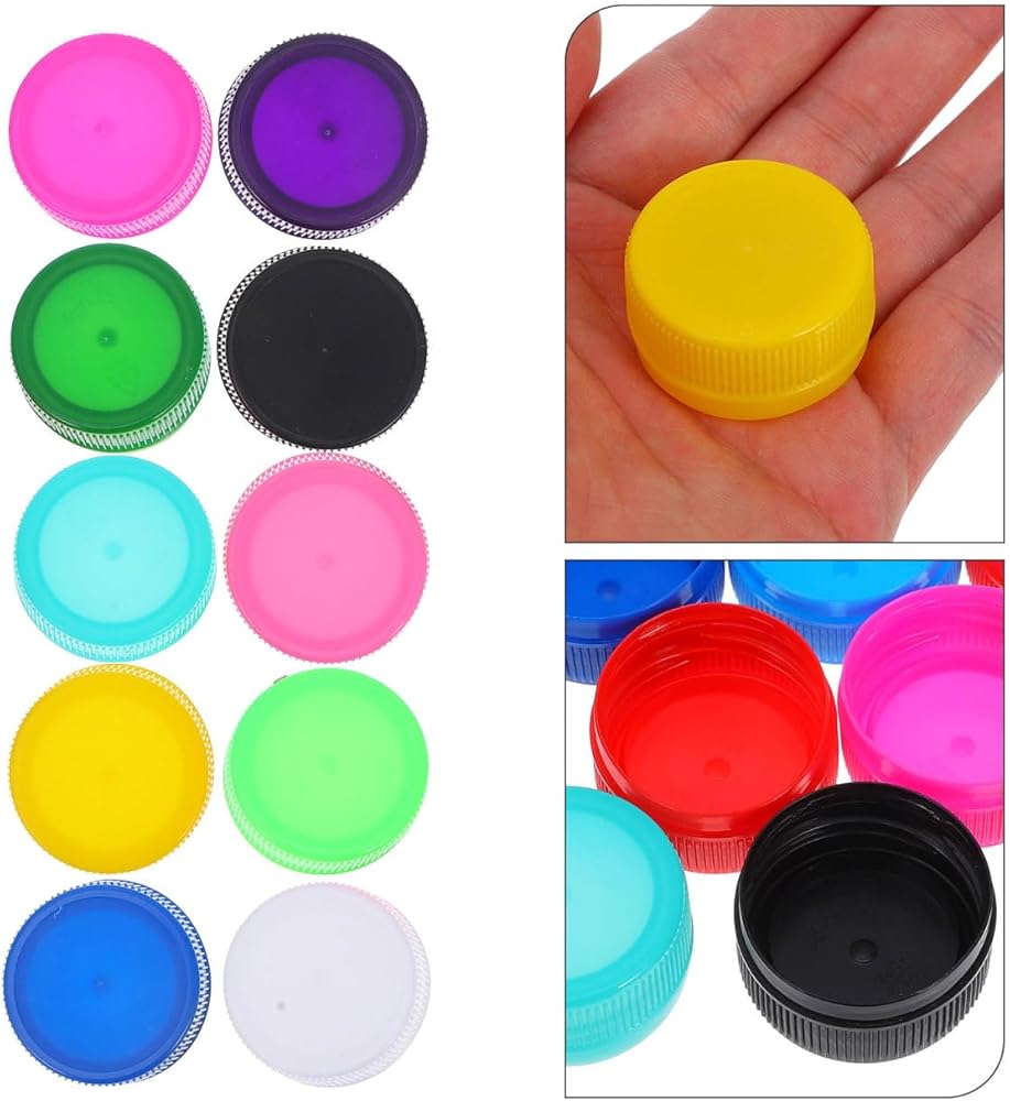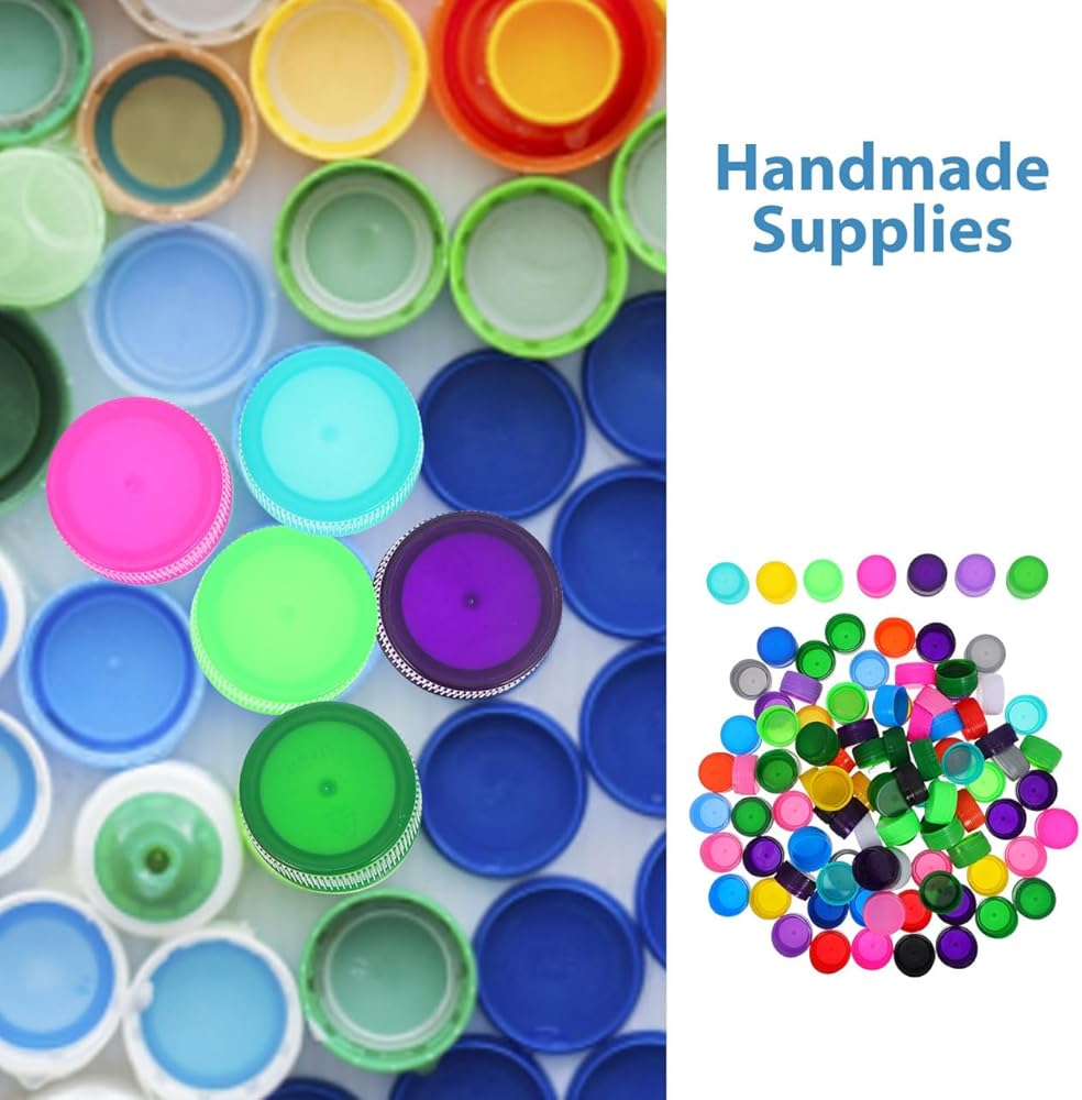 PRETYZOOM 100Pcs Colorful Plastic Bottle Caps 1.18 Inch DIY Craft Bottle Covers for Kids Scrapbooking Embellishments Handcraft Material for Art Projects