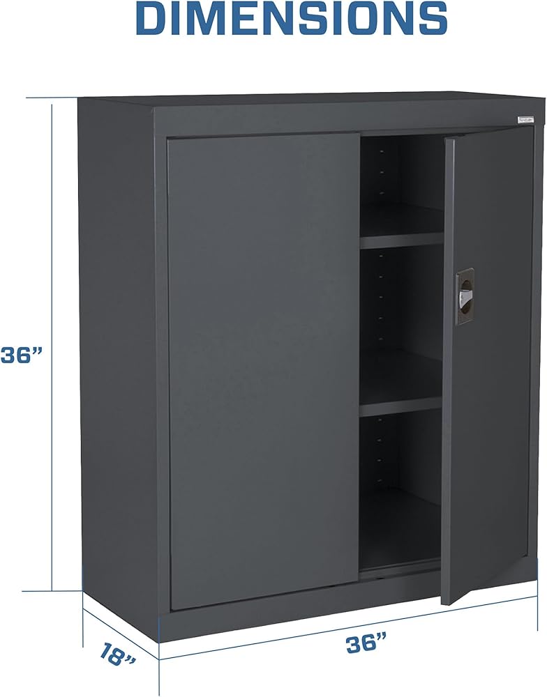 DIMENSIONS: The utility cabinet measures 18 inches in depth, 36 inches in width, and 36 inches in height; durable powder coat finish for enhanced protection and sleek appearance