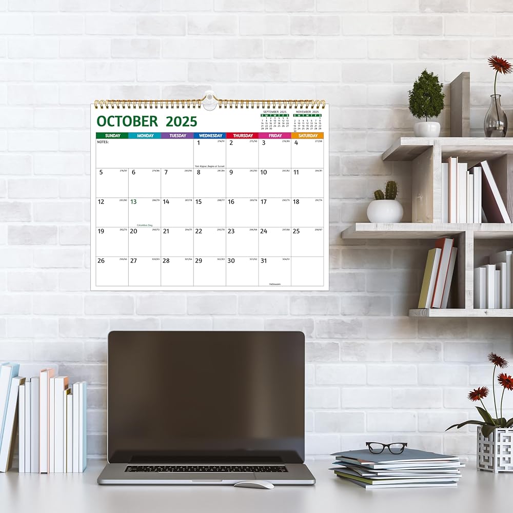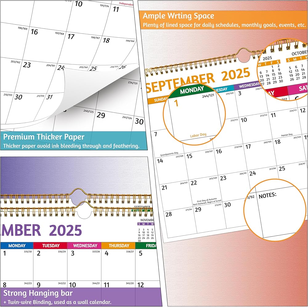🌈 INK-RESISTANT PAPER – This wall calendar 2025-2026 is made of premium thicker paper, which can well avoid ink breeding through and provides you with a smooth writing experience. Featuring twin-wire binding for easy page turning, and strong bar works well keep this calendar hanging on the wall.