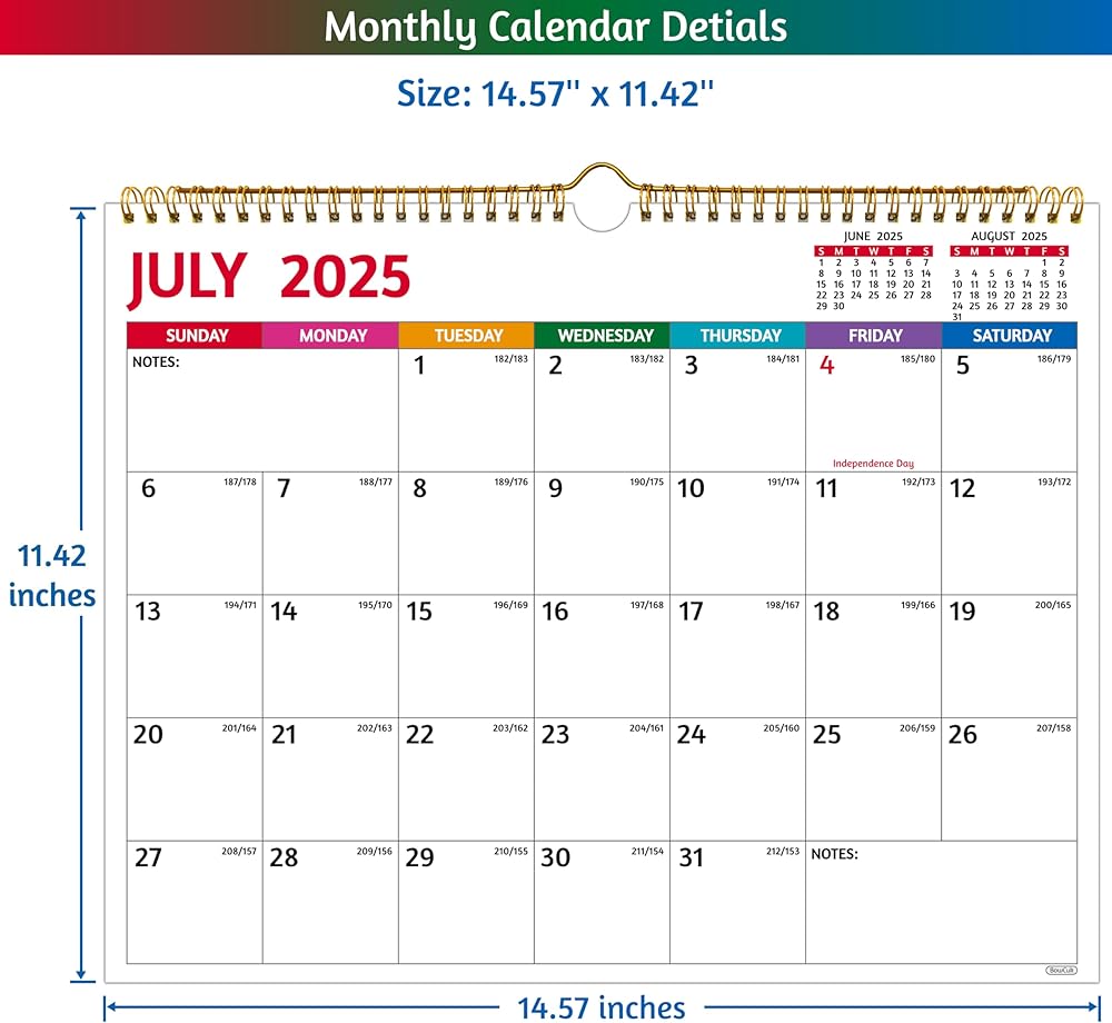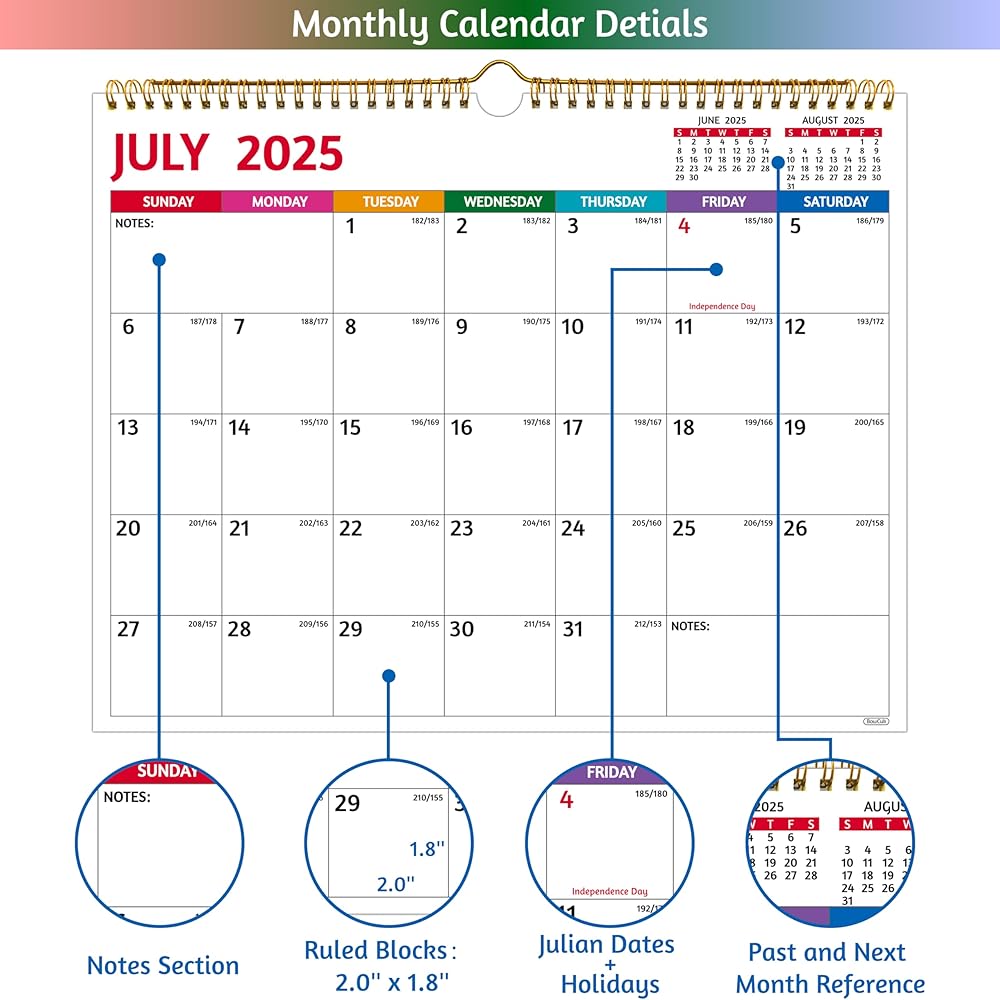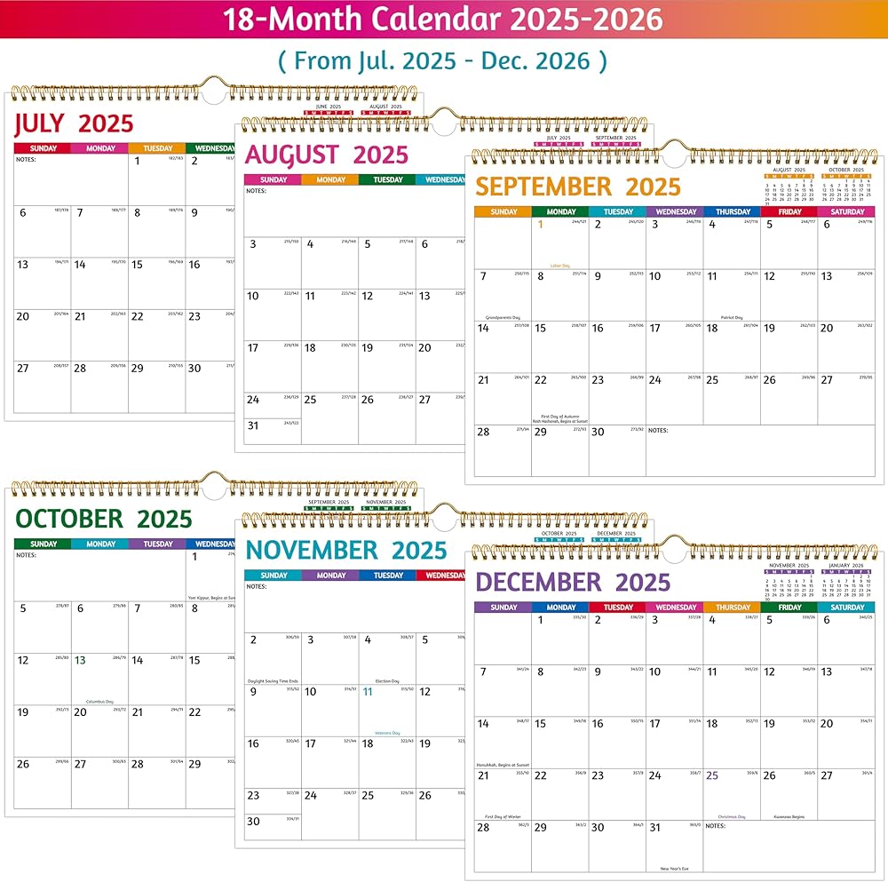 🌈 CALENDAR 2025-2026 WALL – July 2025 – December 2026 (14.57'' x 11.42''), this wall calendar 2025-2026 covers 18-month calendar, with Julian Dates for an easier planning. 18 monthly calendar can easily track your appointments, every deadline, special events, meeting, etc.