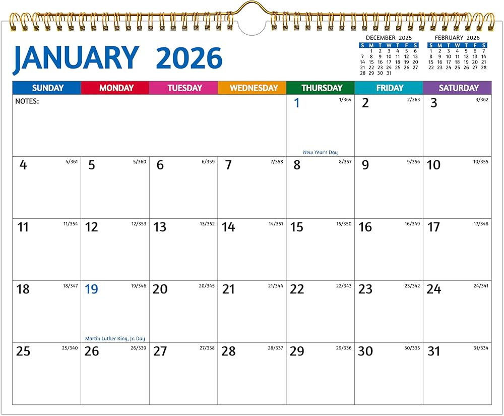 🌈 PLENTY OF WRITING SPACE – This 2025-2026 calendar has large unruled blocks for busy daily scheduling, Notes section for each month to add more thoughts and ideas. Plus, contain previous and next month reference dates for long-term planning, and major holidays listed.