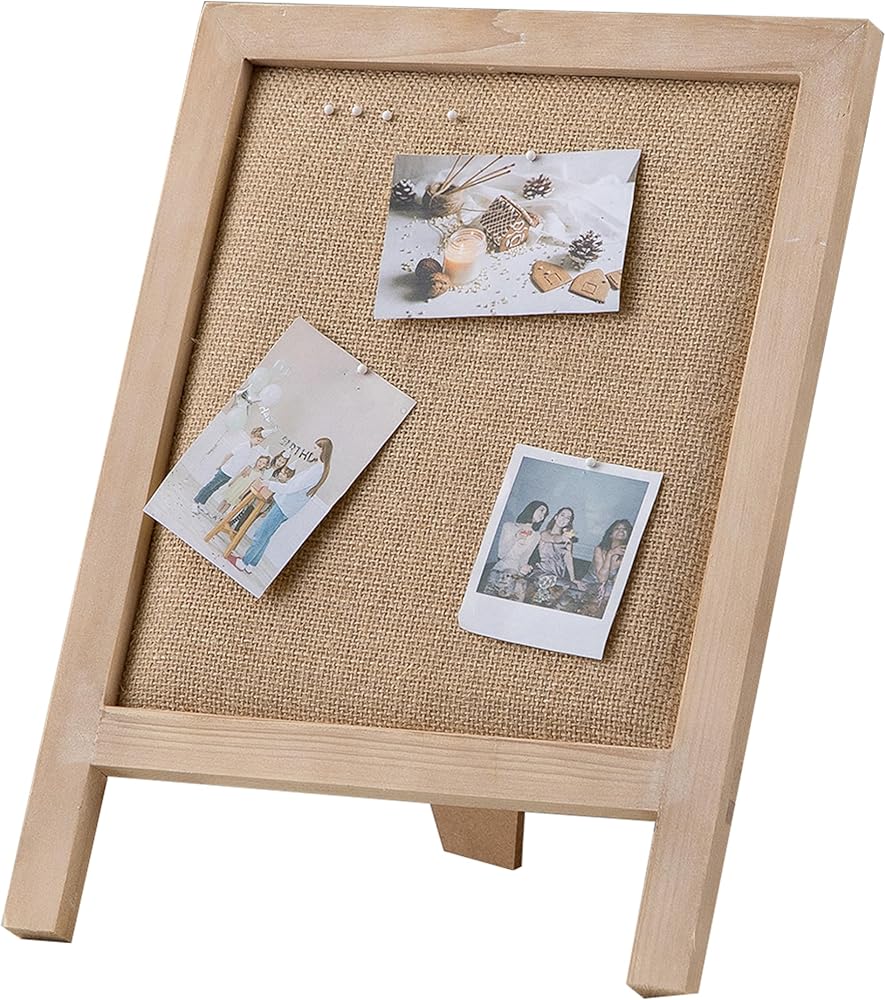 SOFE Small Bulletin Board for Desk, 12"×15" Linen Pin Board with Stand, Tabletop Vision Board, Message Board Memo Display Board, Farm House Standing Notice Board for Home Office