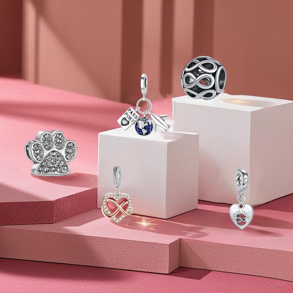 Design your bracelet or necklace: These charms match your necklace or bracelet, with hole diameter is 4.8-5.0mm which is suitable for most bracelets or necklaces, such as Pandora bracelets, snake chain bracelets, troll, Biagi, Chamilia European or Italian bracelets, etc. Make a unique bracelet for yourself or a unique necklace as a pendant to make you stand out! Perfect Gift For Women:The special charms set is a good choice as a gift in various occasions.Birthday Gift,Christmas Gift, Mother's Day Gift,Valentine's Day Gift,Party Favors,Thanksgiving Gift,Memorial Day Gift,Graduation Gift ect, Give her exquisite and beautiful charms, and she will fall in love with them. For Sister,Girlfriend,Mom,Wife, Family,Grandma,Aunt,Friend and Yourself! Charms Care Warm Tips:Limit contact with make-up, creams, perfume and lotions. Avoid silver dips, polishing liquids, ultrasonic cleaning and strong chemicals. Do not wear in the shower, swimming pool or hot tub. Store clean in a dry airtight container, like a ziplock bag. DIY Charms Craftsmanship: We have a professional design team, fine grinding tools, and perform cutting, polishing, welding, oxidation, crystal inlay, polishing, etc. Each charm is manually selected, and you can place them in different positions to match unique bracelets or necklaces!