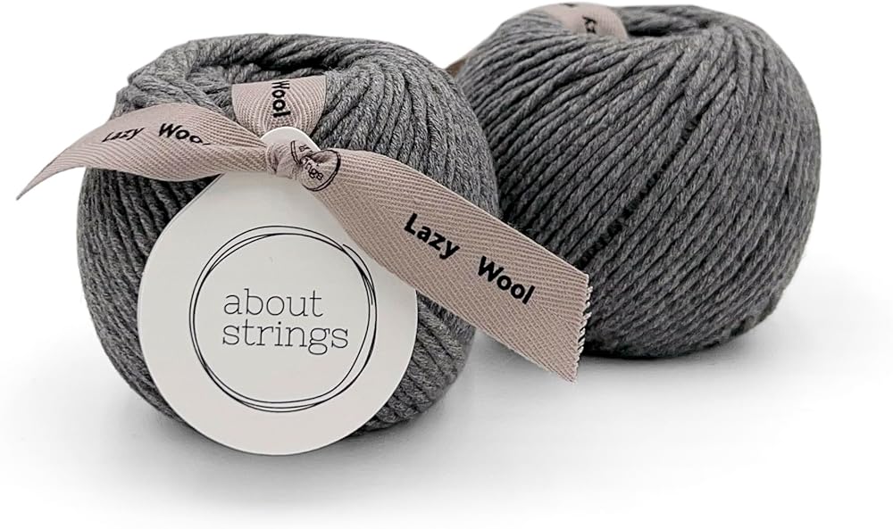 About Strings Lazy Wool Merino Cotton Chunky Yarn 2 Pack - 200g/170yds Premium Soft Machine Washable Bulky Weight 5 Knitting Yarn for Blankets Scarves Sweaters (Ash)