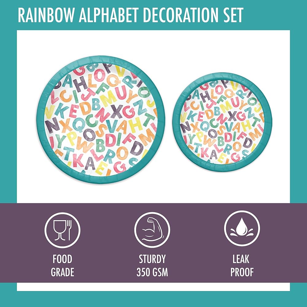 **Multi-Occasion Usability** These kids paper plates and decorations are perfect as ABC party decorations, school themed party, or an alphabet lore birthday party. The disposable kids paper plates (or teacher plates) and happy birthday decorations make cleanup easy while delivering a visually stunning presentation perfect for capturing cherished memories.