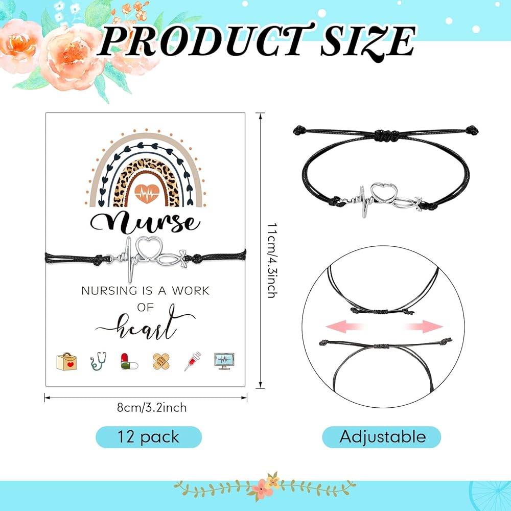 Package Including: you will receive 12 pieces of nurse bracelets for women, and each bracelet comes with a blessing card, enough quantity and delicate design to meet your gifting needs; You can give them to nurses to express your gratitude, and they will feel your heart