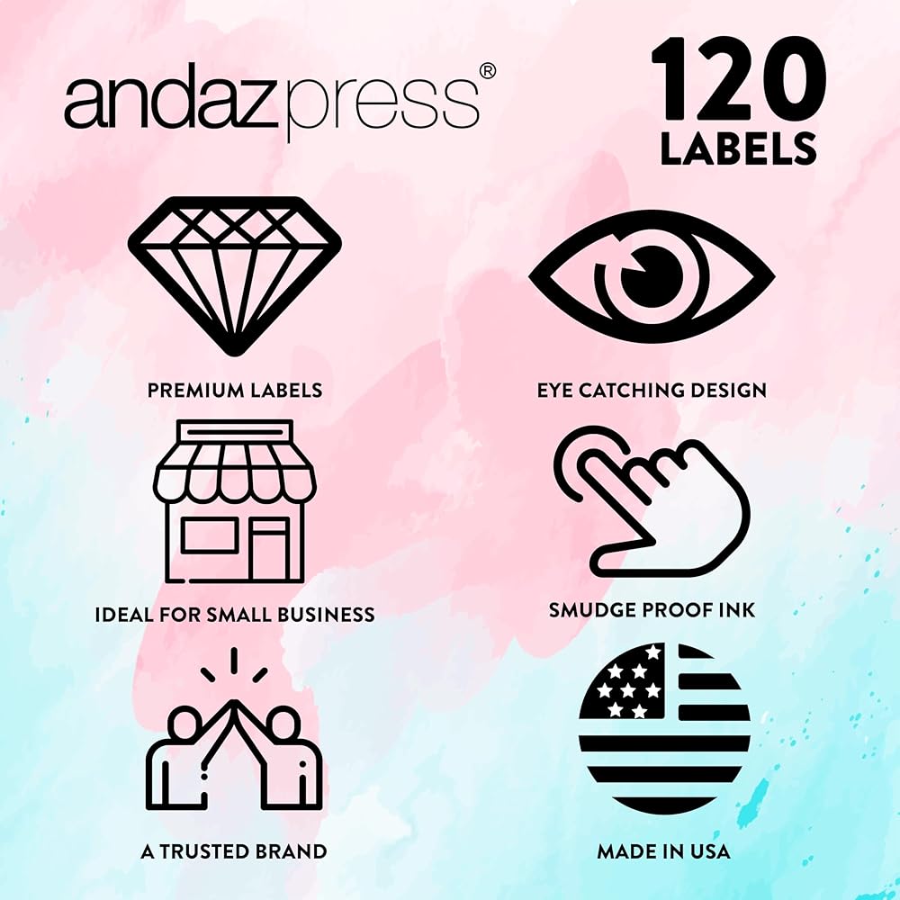 100% SATISFACTION GUARANTEED. Andaz Press packaging labels use non-toxic ink on 2-inch round label stickers. Matte finish circle labels.