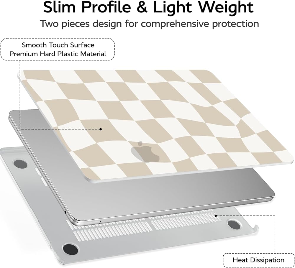 Anban Compatible with MacBook Air 13 inch Case M5 2026 2025-2022 M4 M3 M2 A3449 A3240 A3113 A2681, Plastic Hard Shell+Keyboard Cover+Screen Protector for MacBook Air 13.6 inch Case, Beige Checkered