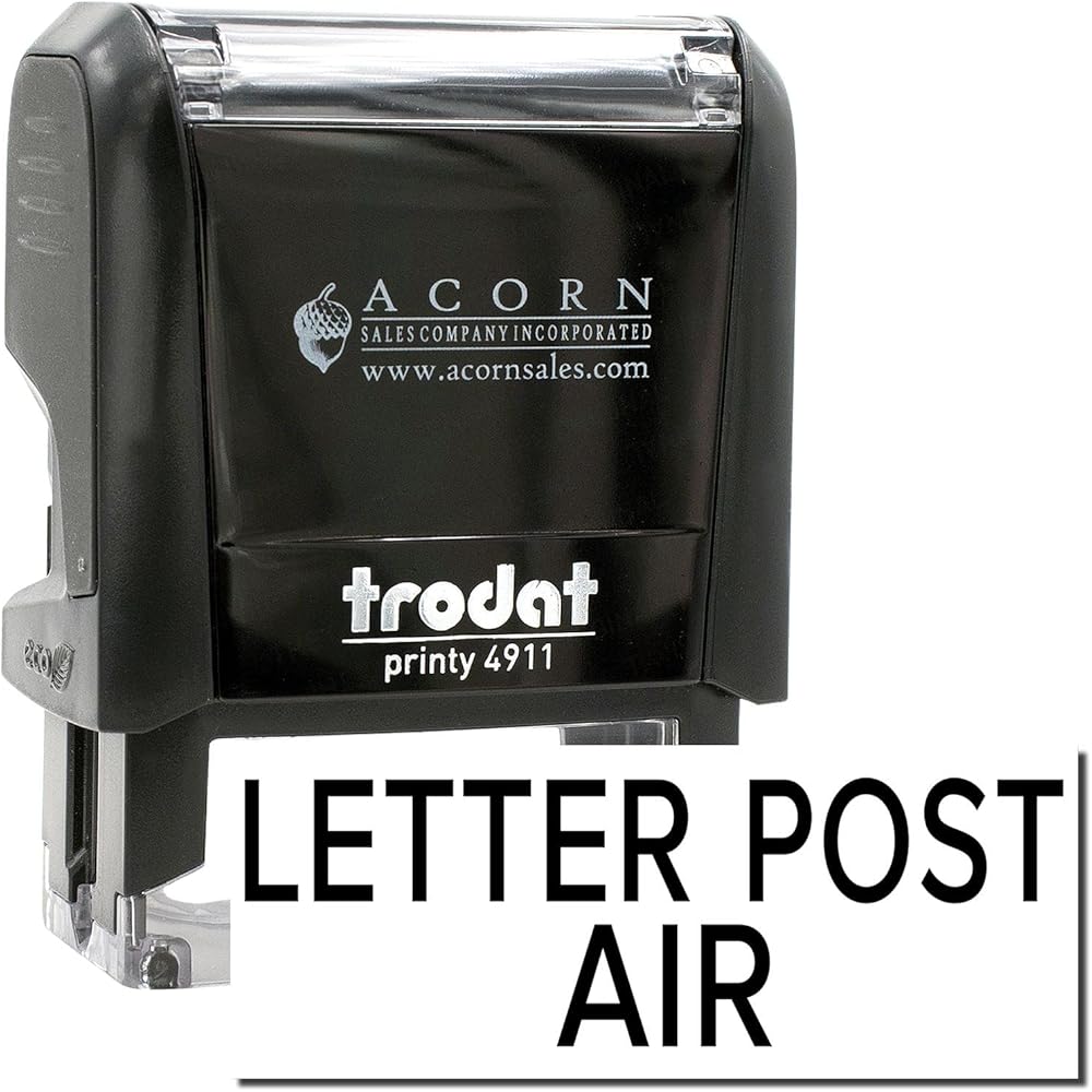 Self-Inking Letter Post Air Stamp, Perfect for Mailroom, Up to 5K Impressions, Available in 11 Ink Colors, Reinkable, Easy Press and Print Stamping, Size Approx 1/2" x 1-1/2"