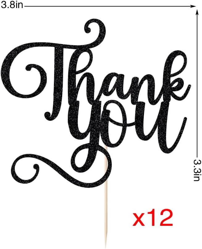 Package Content: You will receive 12 pcs thank you cupcake toppers, enough quantity meets all your needs,materials:wooden sticks and high-grade cardboard, glitter, non-toxic, powder-free,The product has been assembled- please use with confidence-you can adjust the inserting depth of it to adjust the height of cake topper.