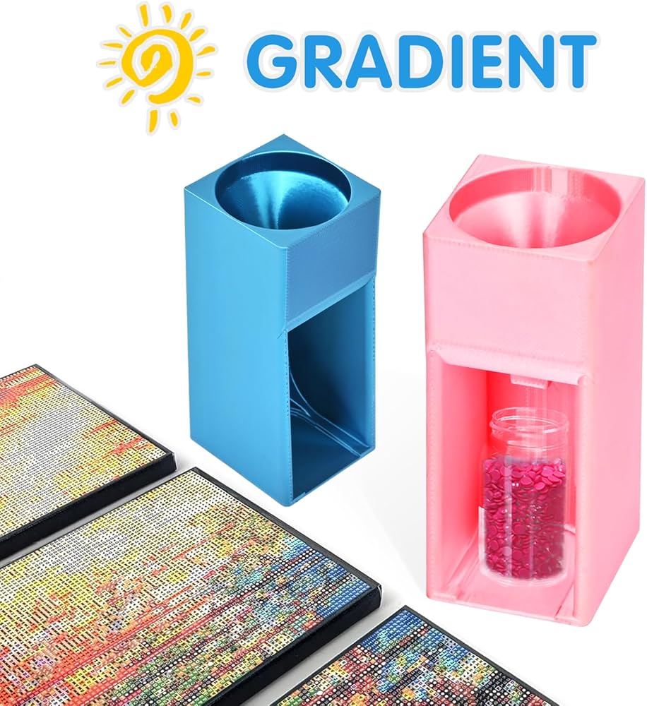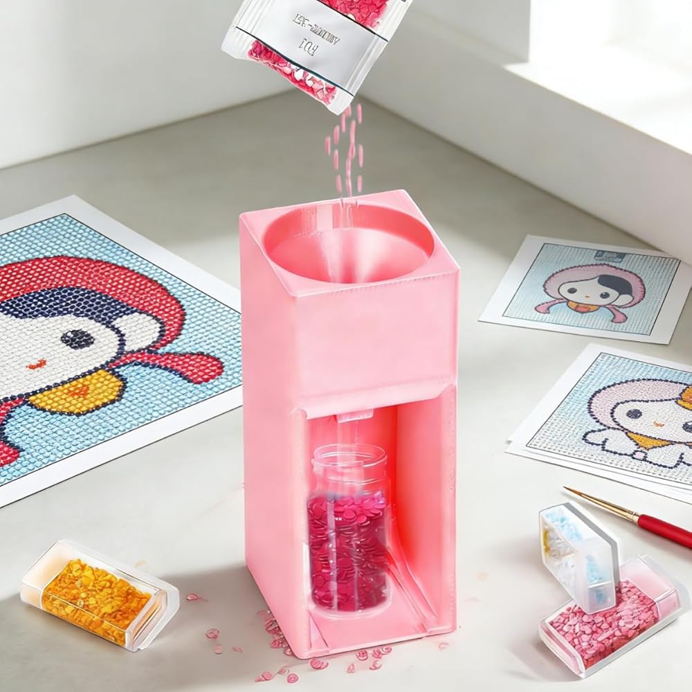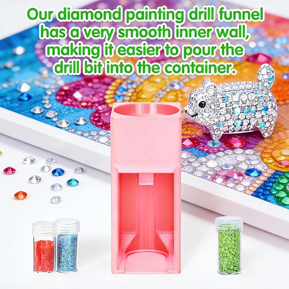 Diamond Painting Accessories Kit Elevate your diamond painting experience with our comprehensive accessories kit, thoughtfully designed to enhance both efficiency and organization. This kit provides everything you need to keep your workspace clutter-free while making the creative process smoother and more enjoyable.Diamond Painting Drill Funnel for Round Containers Tired of spills and bead mishaps? Our specialized drill funnel is tailored for round containers, ensuring a seamless, mess-free transfer of your diamond beads. Its snug fit and easy-pour design mean less stress and more time spent enjoying your craft.Portable Diamond Art Funnel for Easy Transfer Perfect for crafters on the go! Our lightweight and portable funnel allows you to work anywhere, from your home to your favorite crafting spot. No more worrying about losing precious beads or dealing with tedious transfers. With its easy-to-use design, bead organizing becomes a breeze.Diamond Painting Organizer Stay organized with our smart storage solution. This kit helps you keep all your diamond painting beads and tools neatly sorted, making it easier to find the right colors and accessories at the right time. No more digging through piles of supplies—your creativity deserves an organized workspace!