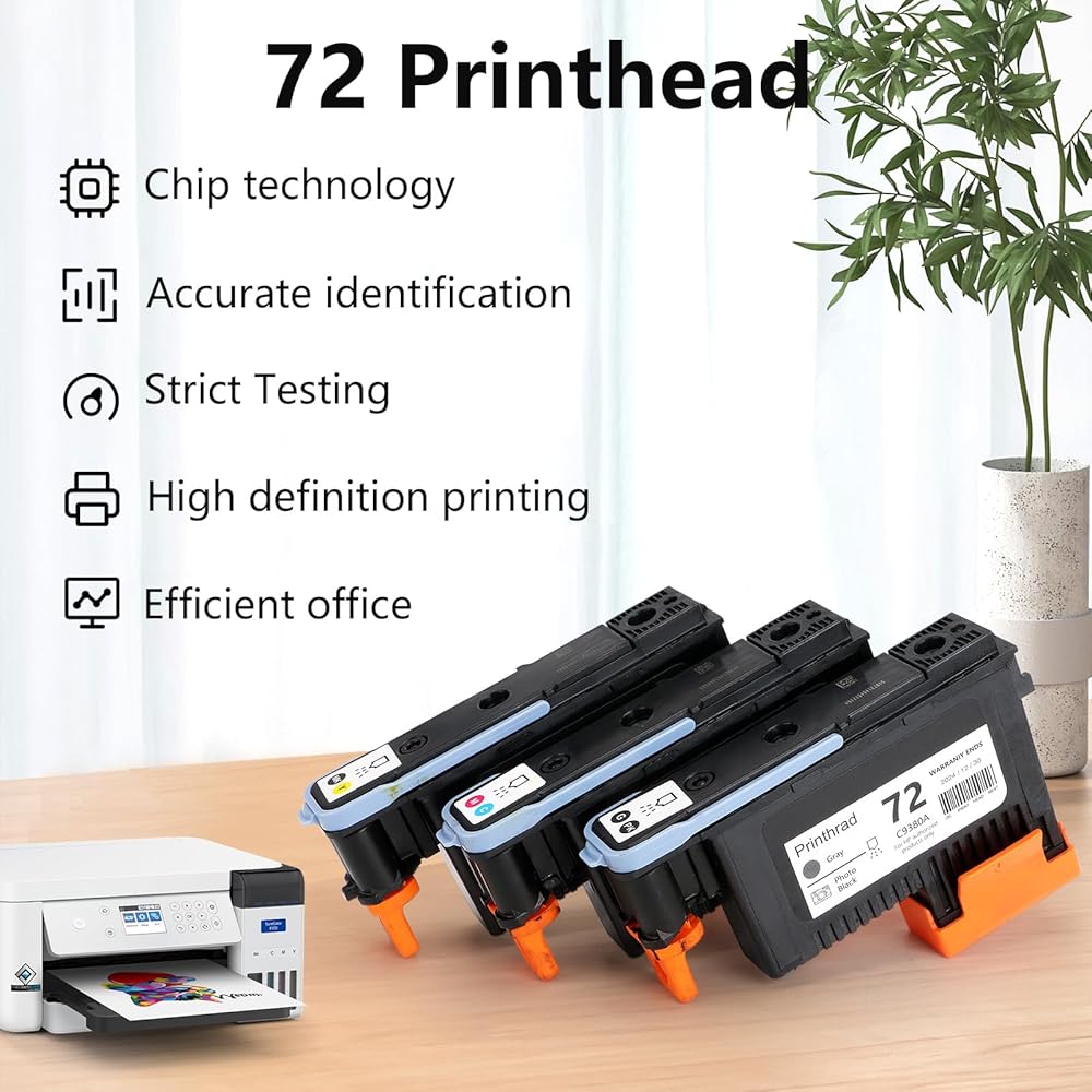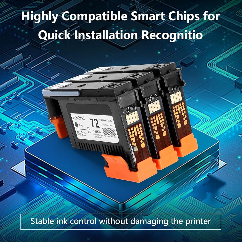 • 【Smart Chip】 The 72 print head is equipped with an advanced chip, which is perfectly compatible with your printer. The smart chip recognition is accurate and ensures stable operation of the device. The unique micro-ink nozzle feature ensures smooth ink flow, reducing the risk of clogging and increasing printing efficiency.