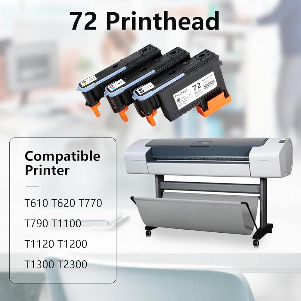 • 【Wide Compatibility】72 printheads for HP Designjet T610, T620, T770, T790, T1100, T1120, T1200, T1300 and T2300 printers, replacing C9380A, C9383A and C9384A printheads.