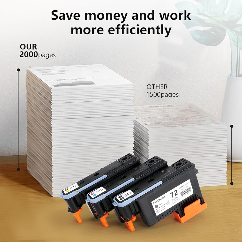 • 【Product Packaging】You will receive 3 pieces of 72 print heads, 1 gray/photo black (C9380A), 1 magenta/cyan (C9383A), 1 matte black/yellow (C9384A), high-quality ink, natural color restoration , presenting excellent image details.