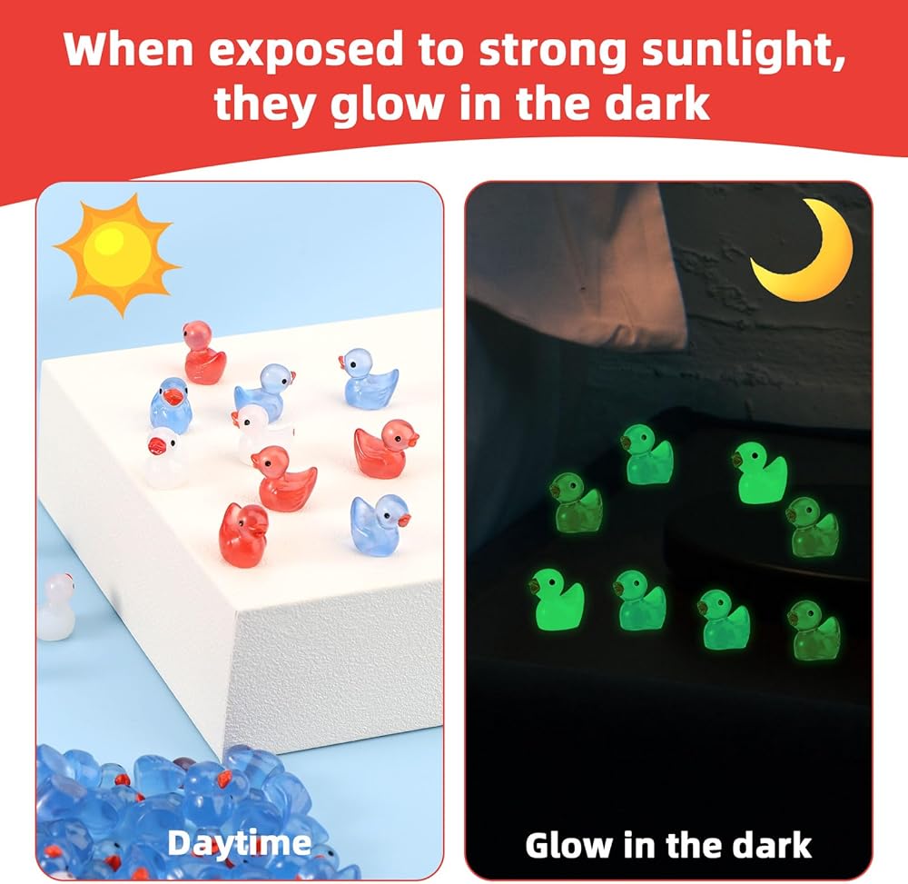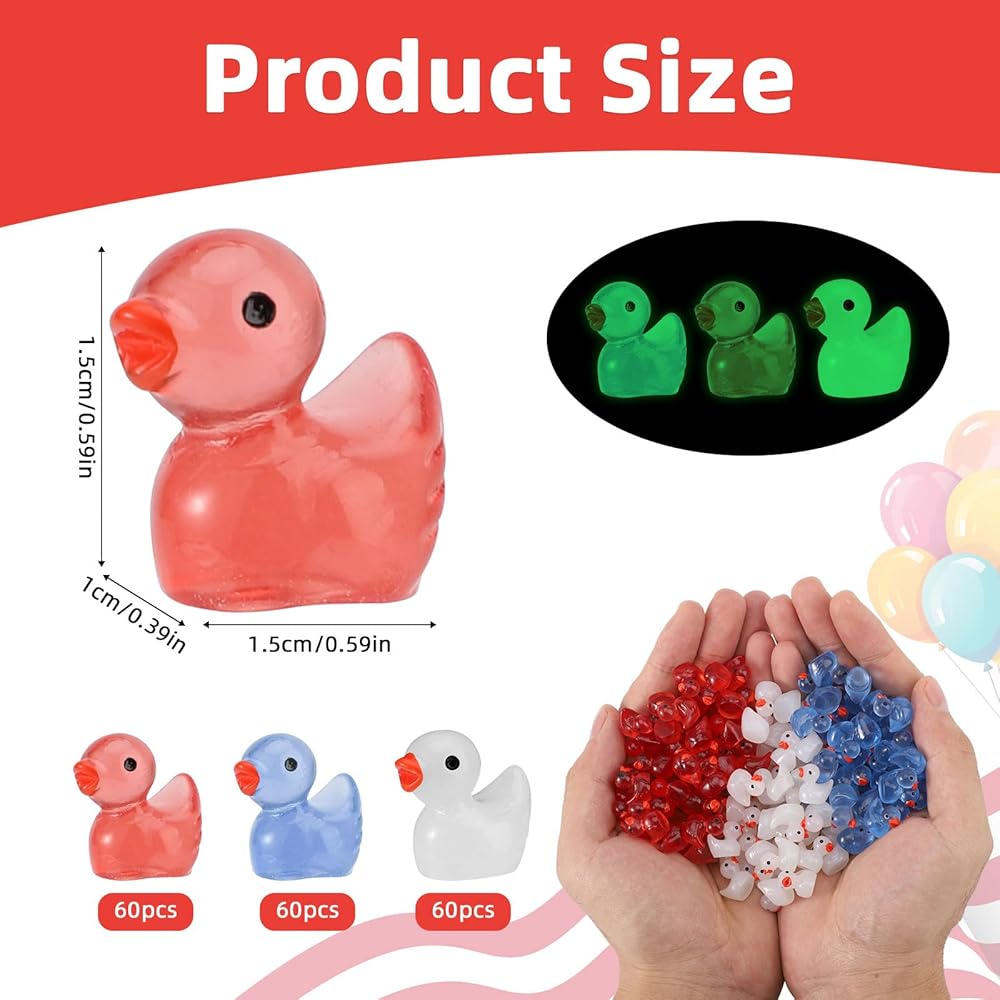 180pcs Luminous Mini Resin Ducks, Red White Blue 4th of July Glow in The Dark Mini Ducks Figurines Miniature Memorial Decoration for Garden Landscape Dollhouse DIY Crafts