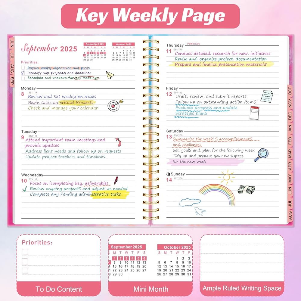 📔【Suitable for a Variety of Situations】- This 2025 planner is very suitable for teachers, students, housewives, and of course more suitable for women. Give it to your loved ones as a gift, and it will be more convenient to manage school assignments, work projects, and family activities.