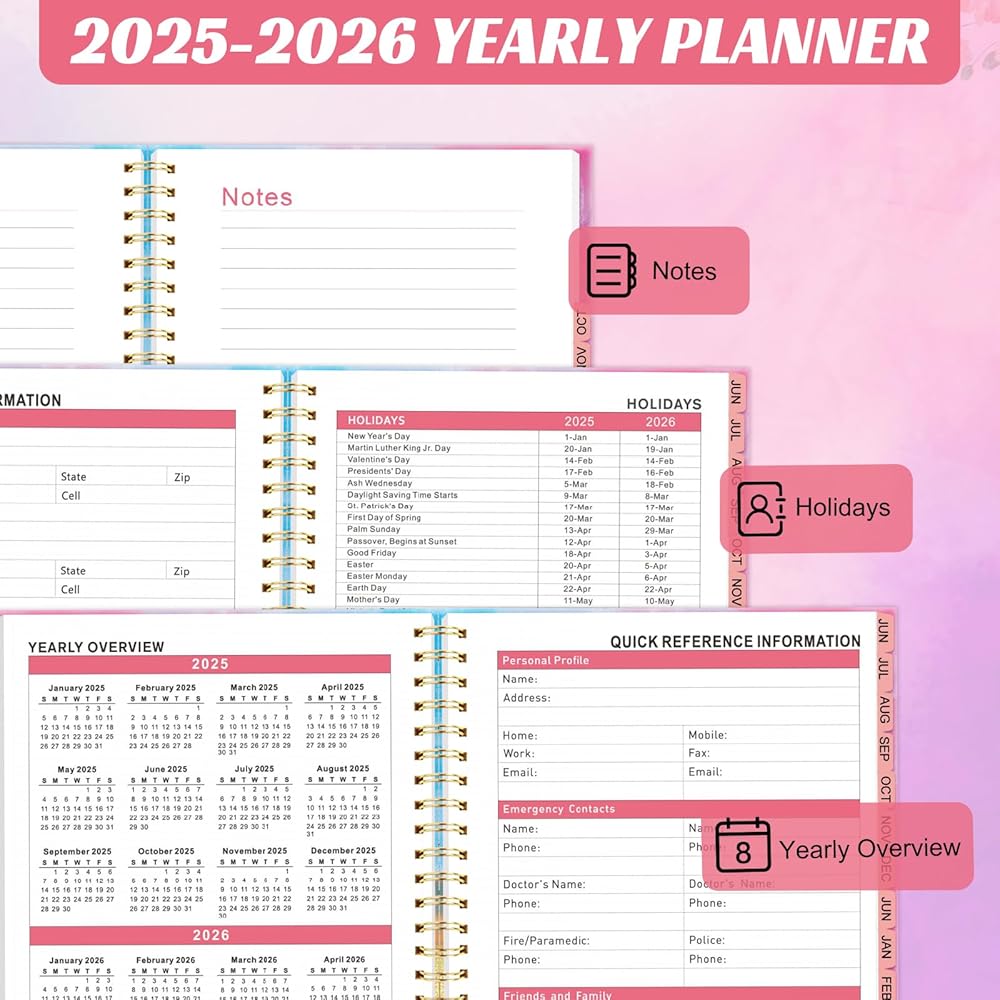 📔【Gannyfer Planner 2025-2026】- 2025 planner, 6.1"x8.3", covers 15 months from June 2025 to Aug 2026. Includes personal information, 2025-2026 year overview, US important holidays, contact page, monthly, weekly, daily, notes blocks, to help you plan and organization your day effectively.