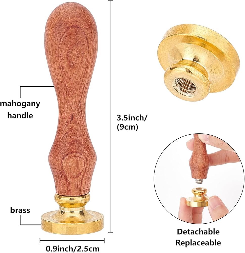 Brass Sealing Wax Stamp: The handle of heart wax seal stamp is made of rosewood, smooth to touch, durable to use, sealing wax stamp head is made of brass, smooth and shiny, non stick, easy to clean, clear imprint