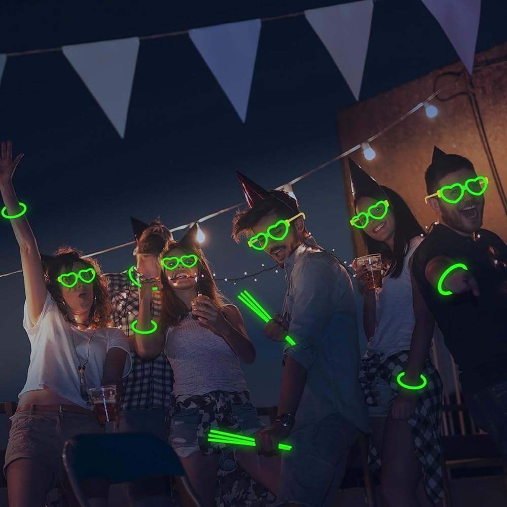 100PCS Green Glow Sticks Party Favors with 20PCS Glow Glasses(For 60 Glow Bracelets&20 Heart Glasses),Glow In The Dark Party Supplies Neon Party Decor for Halloween Chirtsmas Carnival Birthday