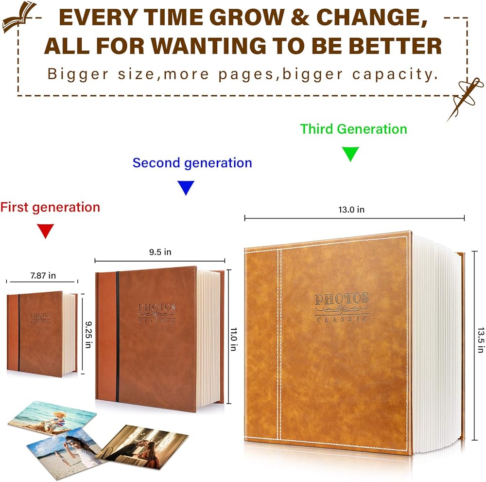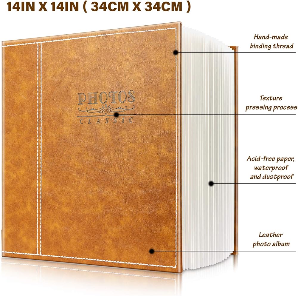 Magnetic Self-Stick Page Photo Album,Leather Cover,Holds 4X6,5X7,6X8,8X10,10X12 of Photos,Suitable for Anniversary Albums,Wedding Photo Album,Baby Growth,Family Album.