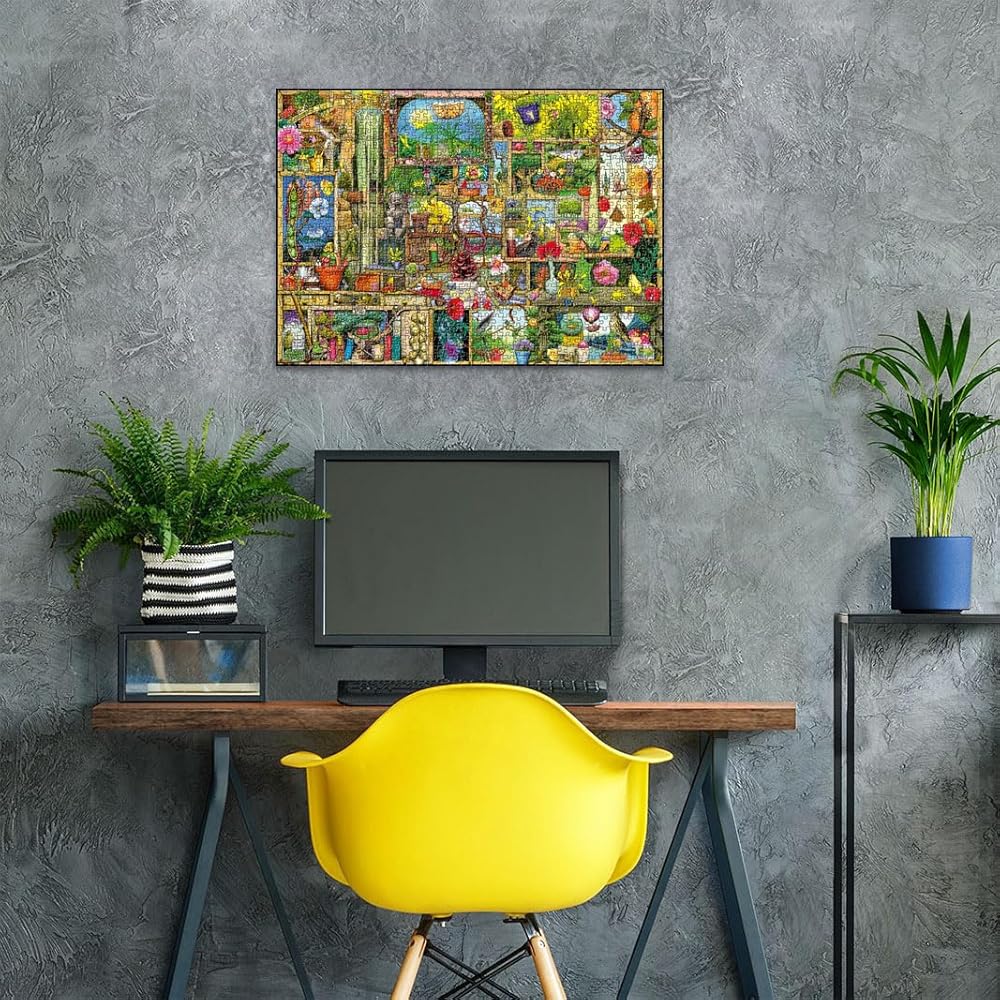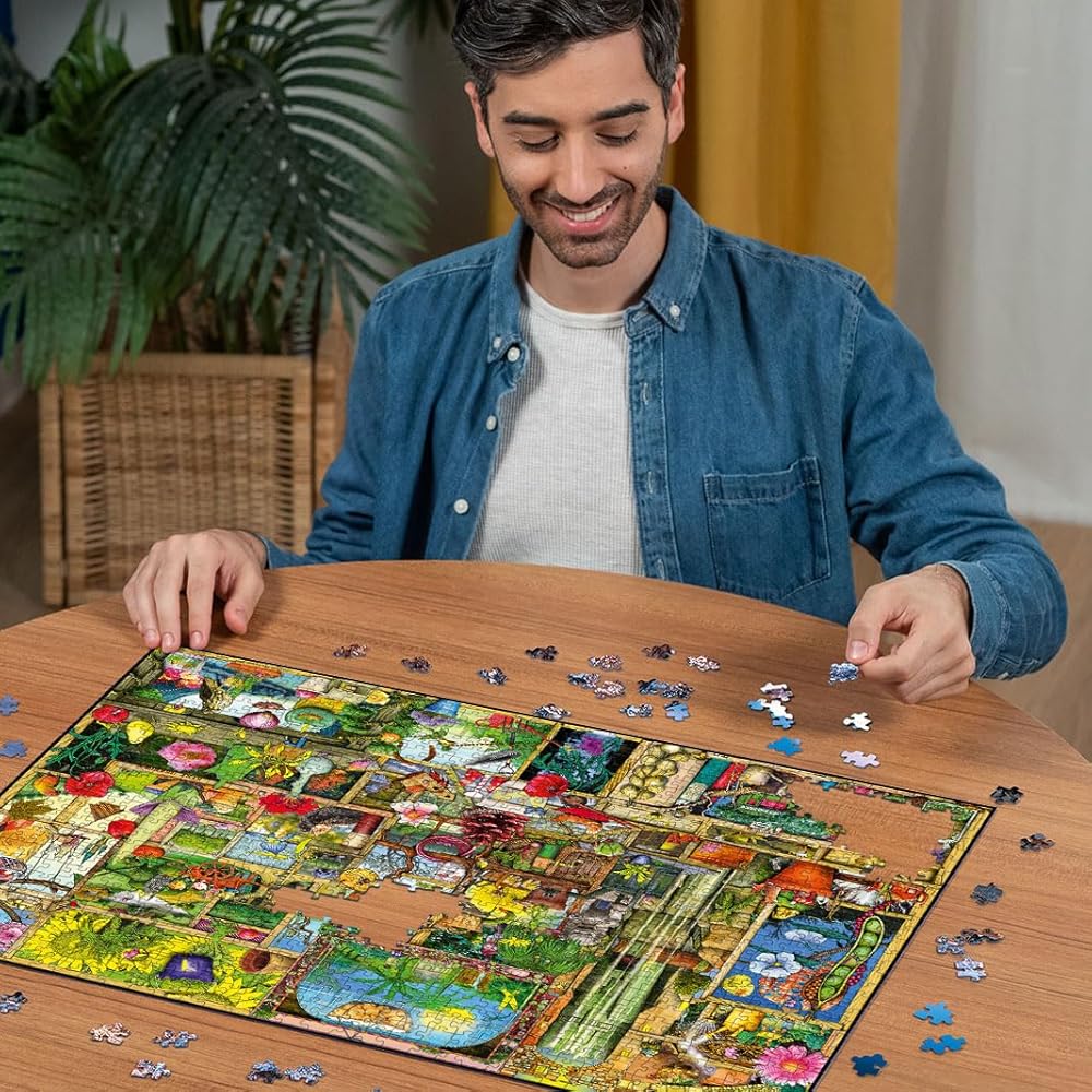 From cute and cuddly to weird and wacky, Colin Thompson packs in the whimsical and wonderful in “The Gardener's Cupboard” for hours of puzzle fun! Ravensburger has been making the world's finest jigsaw puzzles for over 130 years in Germany. Ravensburger puzzles for adults are made to fit precisely - no matter how large or small the puzzle pieces. All of our jigsaw puzzles are precision-made so that every piece fits perfectly, without frustration. Best of all, every single piece in this puzzle is unique, no duplicates, for the perfect interlocking fit. We use extra thick, custom-developed European blue board and hand-crafted puzzle die cutting tools to prevent fraying or peeling puzzle pieces and dust. All our puzzles have cleanly separated pieces and our fine linen-structured, museum quality paper provides a glare-free puzzle image. We back this up with a lifetime warranty, no questions asked. Simply the world's best puzzles for adults. Start connecting!