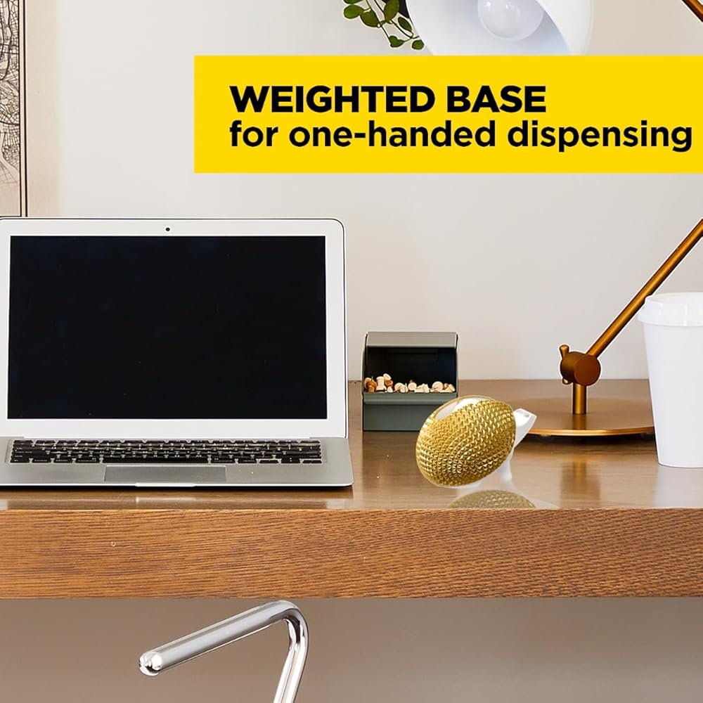 - Weighted base for one-handed dispensing