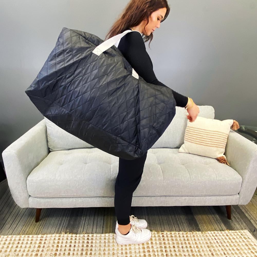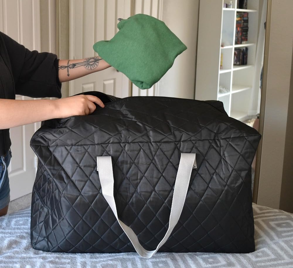 Medium (25 Gallon) Quilted Black Storage Bag -Simple Living Solutions Underarm Travel Tote. Travel Weekender and Small Duffel Bag. Perfect for Short Trips or Long-Term Storage.