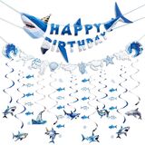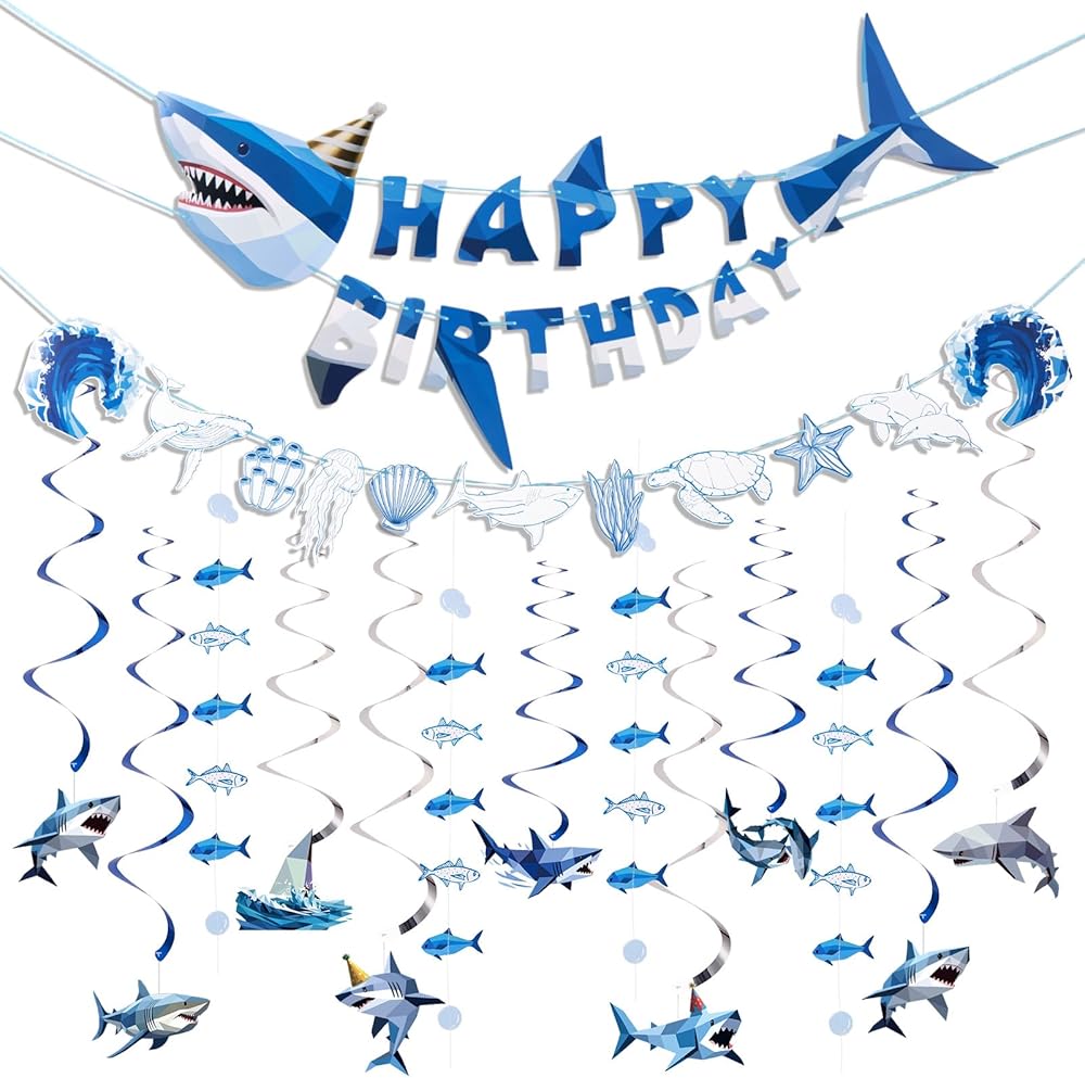 Paper Jazz Ocean Shark Decor Whale Shark Party Decoration for Wall,Under The Sea Birthday Banner with Swirls, Baby Shark Birthday Supplies Hanging Fish for Room Classroom Party (Blue)