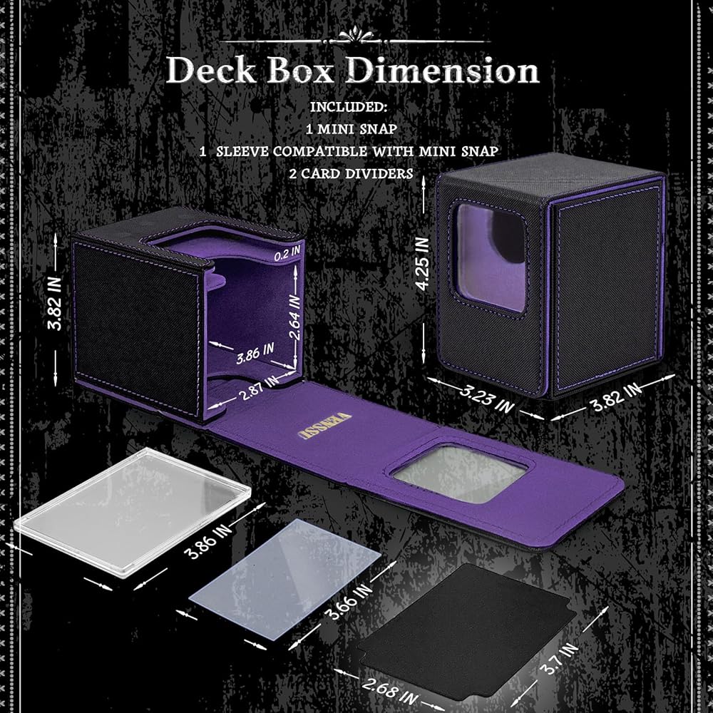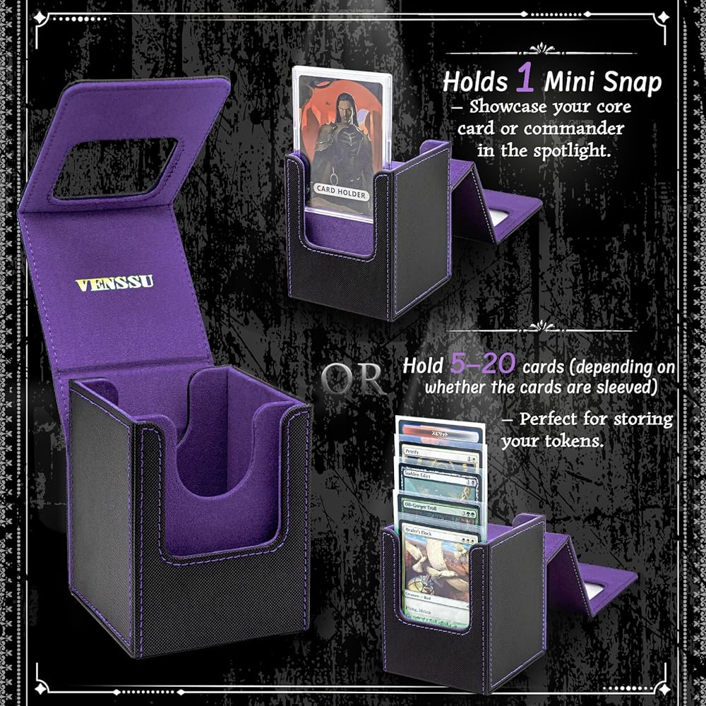 Venssu MTG Deck Box with Front-Facing Commander Display, Card Deck Case Fits 100 Single Sleeved Cards, PU Leather Magnetic Tcg Storage Box with 2 Dividers, 100% UV Protect Mini Snap (Black and Purple)