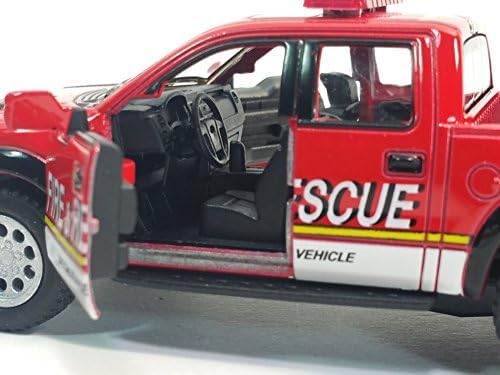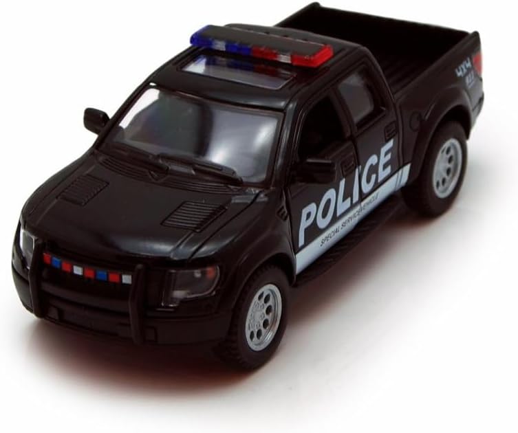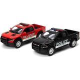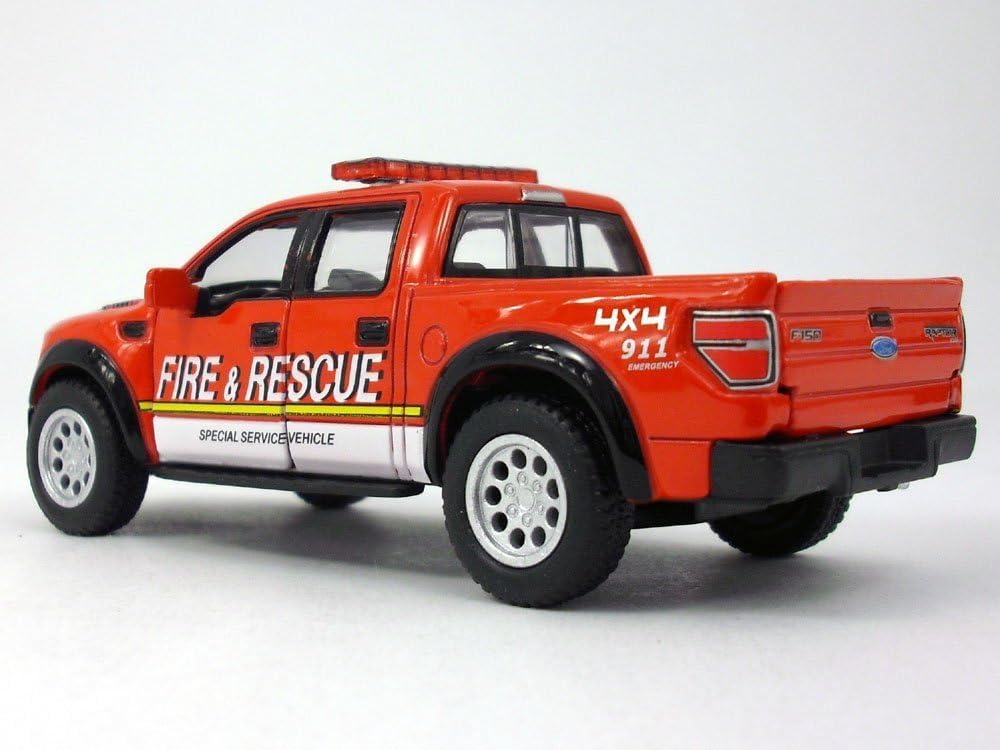 🚨 Bring the excitement of emergency services to your playtime with this KiNSMART 2013 Ford F-150 SVT Raptor Police & Fire Rescue Trucks Edition Set. Featuring two 1:46 scale die-cast metal models, this set allows you to recreate thrilling rescue scenarios. The fire truck is painted in a vibrant red hue with "Fire & Rescue" emblazoned on the sides, while the police truck sports a sleek black finish with "Police" markings. Measuring approximately 5 inches in length, these trucks boast impressive detail and functionality. The doors and tailgates open, allowing you to load and unload your miniature crew. Plus, the pullback action lets you send these vehicles racing across the floor or table. Whether you're a fan of law enforcement or firefighting, this set offers endless hours of imaginative play. Crafted with precision and care, these miniature trucks make an excellent addition to any collection or playset.