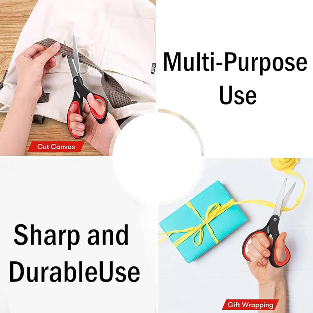 Versatile Sizes: The set includes four scissors in 5, 6, 7, and 8 inches, catering to a wide range of tasks like crafting, sewing, office work, and household use.