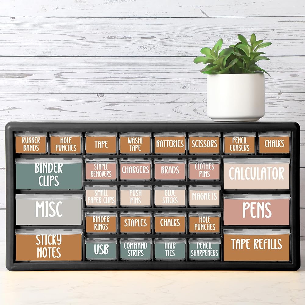 Frienda 84 Pcs 4 Sheet Toolbox Labels Tool Box Storage Stickers Teacher Drawer Tag Colorful Classroom Decor for Back to School Teachers Classroom Organization (Morandi)