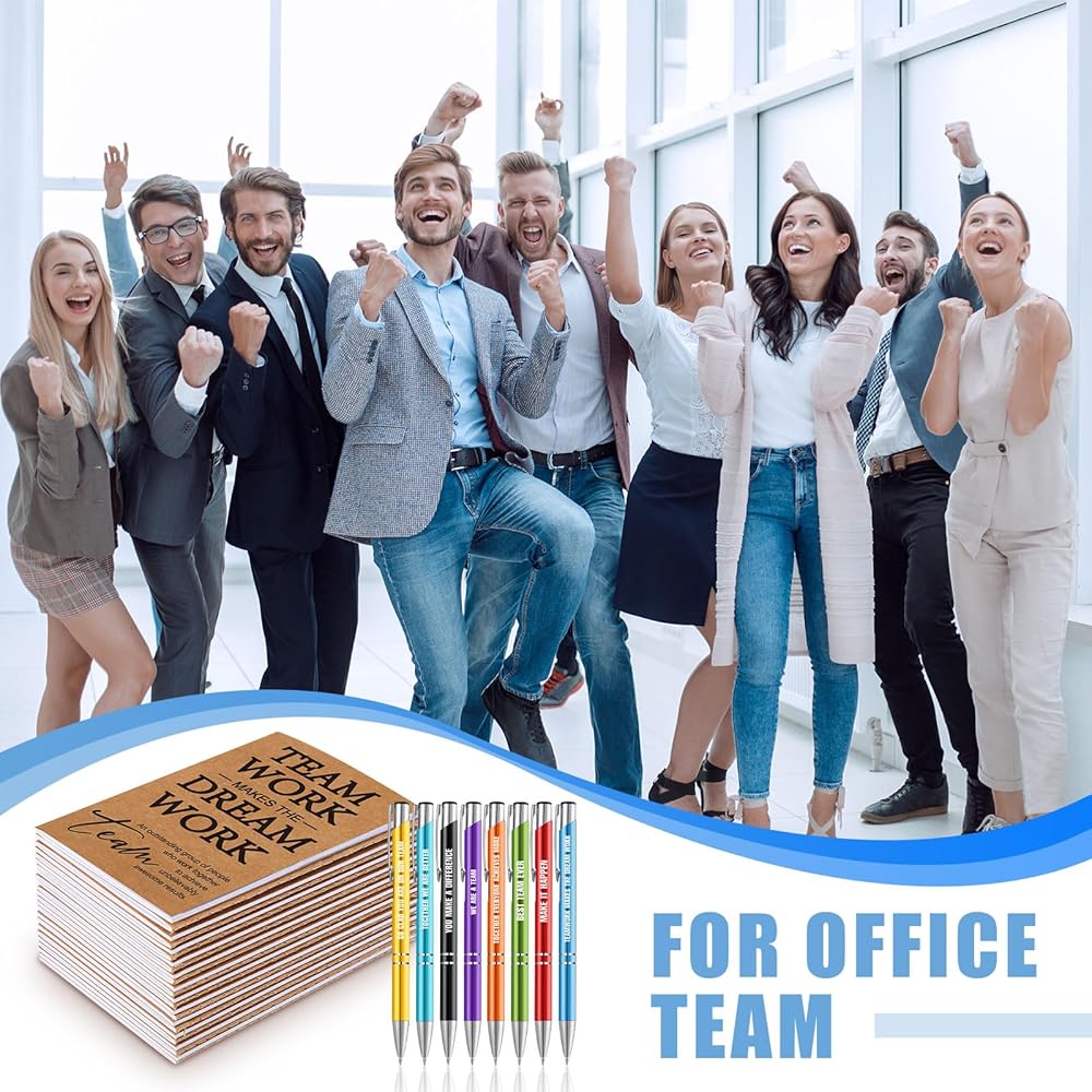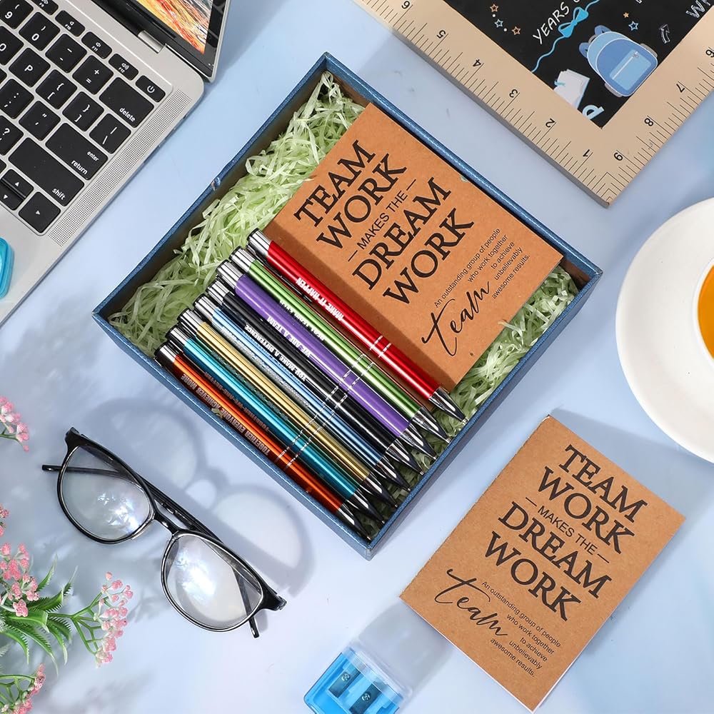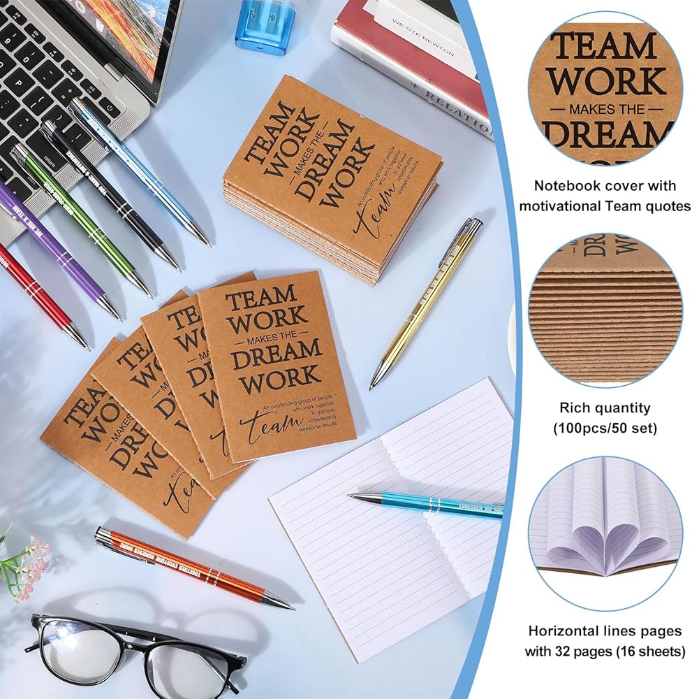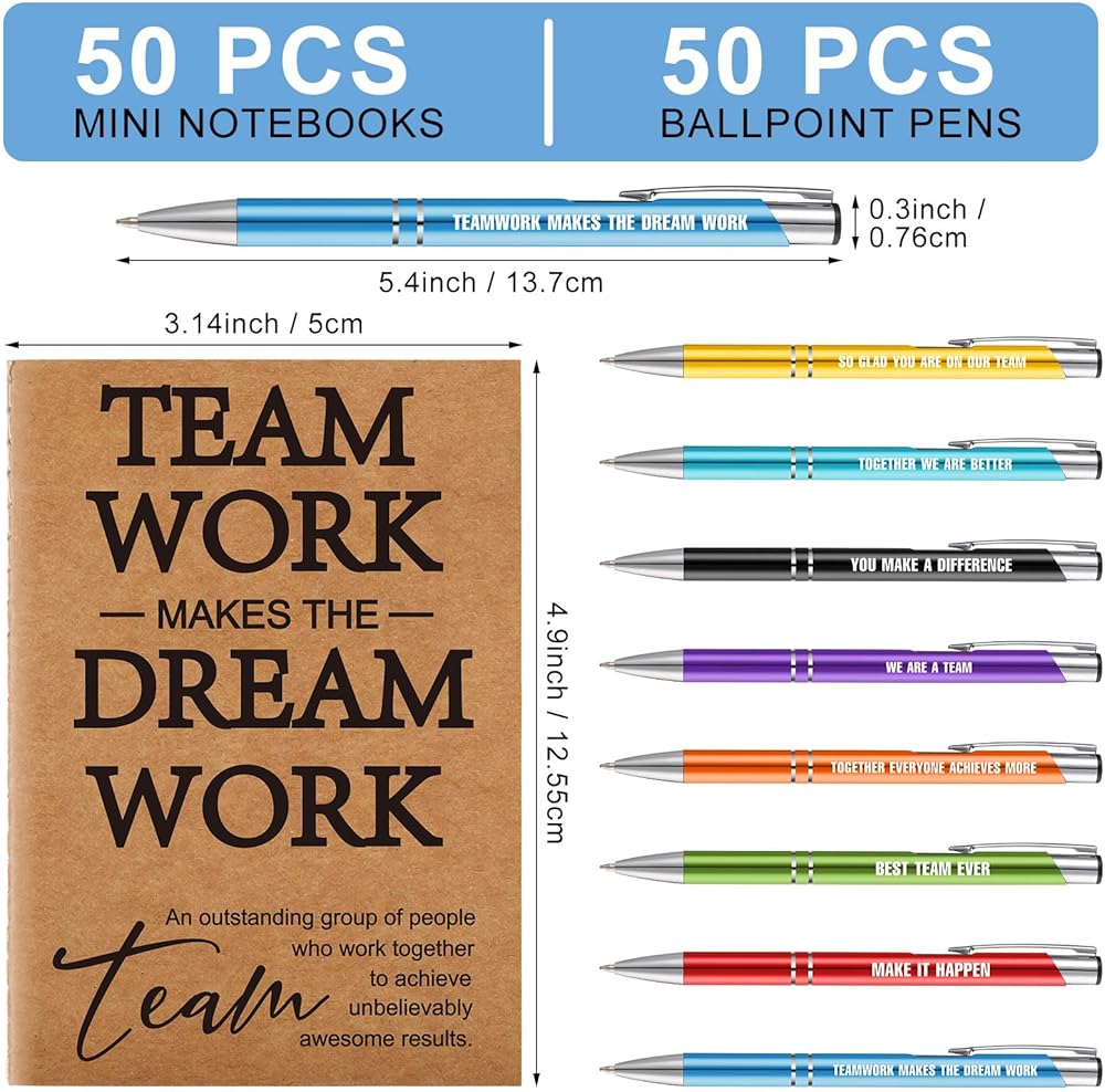 Features Aimed to Inspire: more than just tokens, these employee appreciation gifts are equipped with special features to inspire, each inspirational notebook comes with 16 sheets (32 pages) while the pens and notebooks are beautifully printed with the message, [Teamwork Makes the Dream Work], just inspire your team today