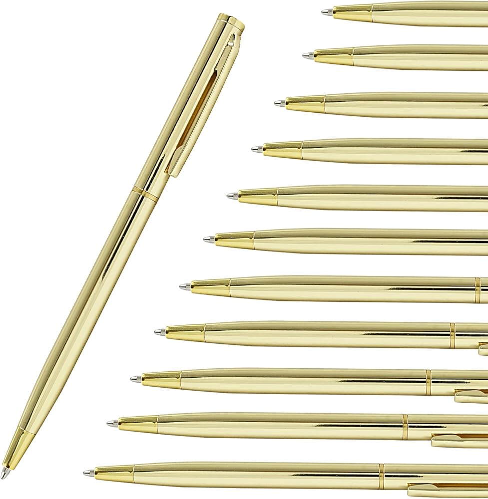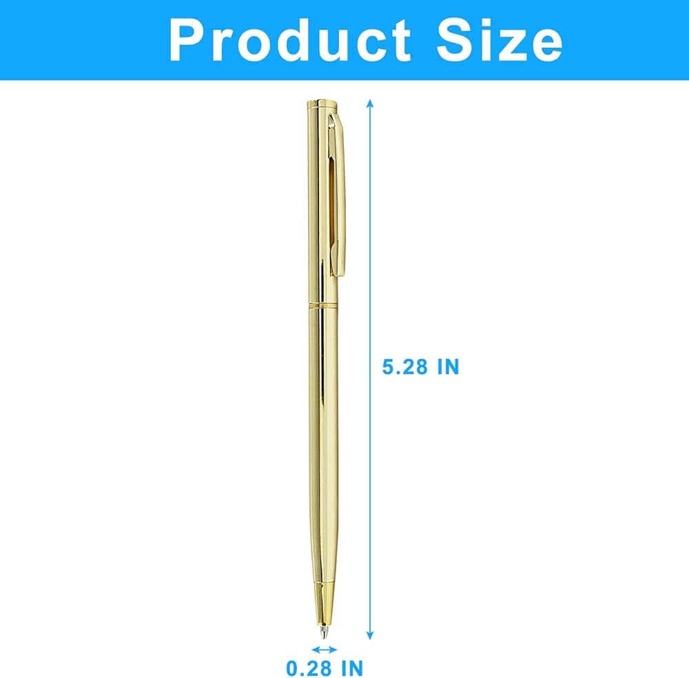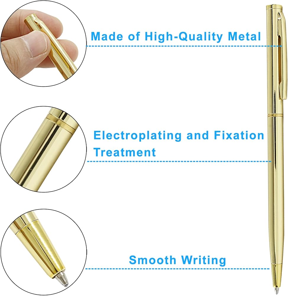 Portable and Versatile: These gold metallic pens are not only compact and lightweight but also versatile in their usability. Whether you're at home, school, office, or on the go, these pens are perfect companions. They fit easily into pockets, bags, or pencil cases, making them a convenient choice for everyday writing tasks.