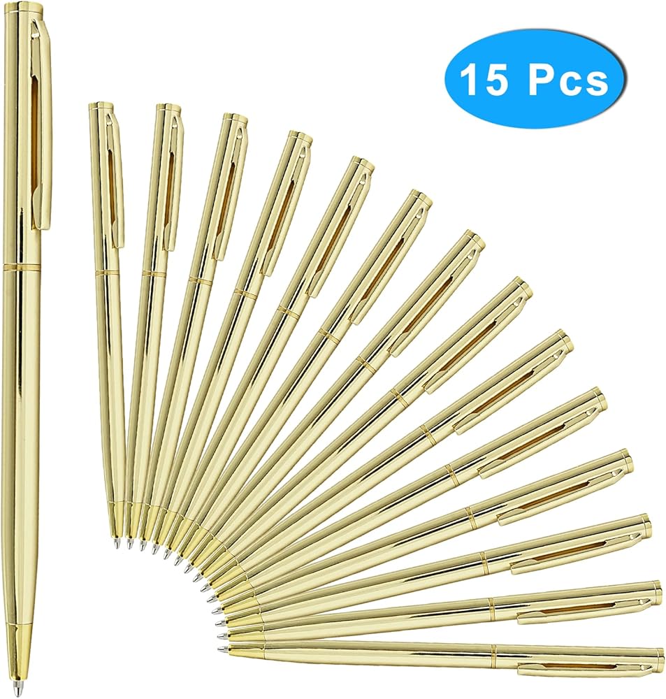 Hitefu 15PCS Gold Metallic Pens, Slim Metallic Retractable Ballpoint Pens, Black Ink Metal Pens for Business Office Students Teachers, 1.0 mm Medium Point, Stylish Style